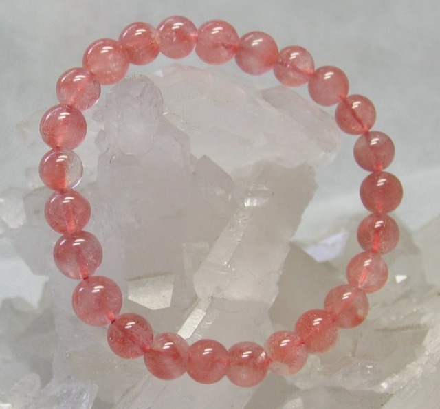 究極!超希少 カザフスタン産 ストロベリークォーツ・ブレスレット7mm ♪