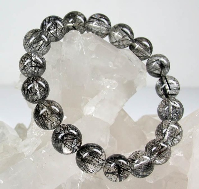 ブラジル産、最高品質ブラックルチル水晶(黒針水晶)ブレスレットです。 トルマリン水晶とも呼ばれ、水晶の中にトルマリンが黒い針状に結晶した石です。水晶とトルマリンが互いにパワー高めあい、強いパワーで周囲の気を清浄にし、人間本来の強さや純粋さ、感性を取り戻させてくれると言われています。 ブラックルチル(黒針)水晶には癒し効果もあるとされています。 水晶玉の直径:7mm*26玉 重さ:13g 15センチゴム使用。 ☆天然のものですので、若干不純物、色むら、天然キズがある場合がございますので、予めご了承お願いします。