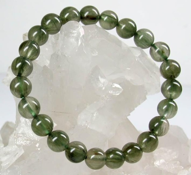 グリーンルチル水晶ブレスレット★8.5mmD706
