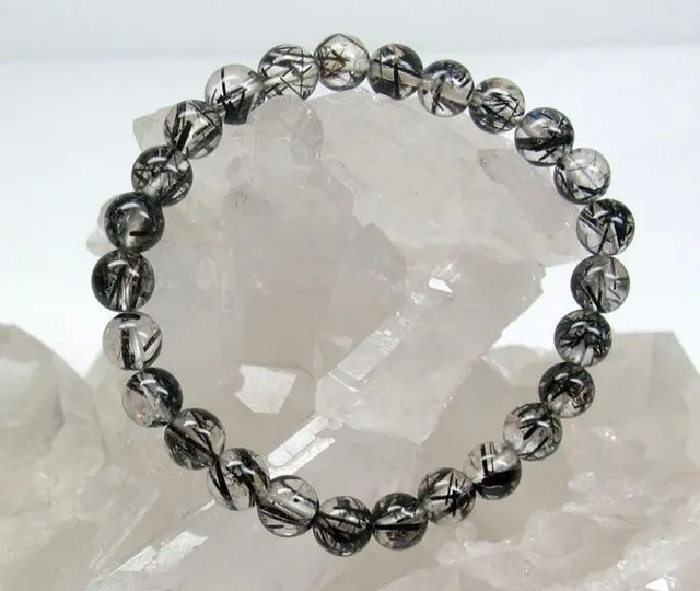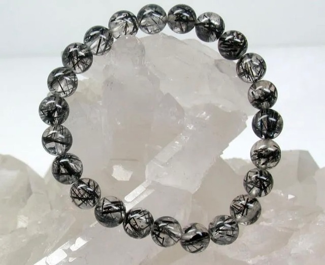 最高品質ブラックルチル水晶ブレス★7mmF396