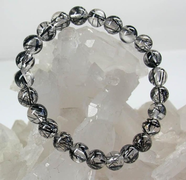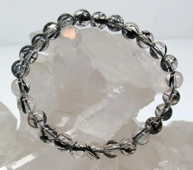 最高品質ブラックルチル水晶ブレス★7mmF395