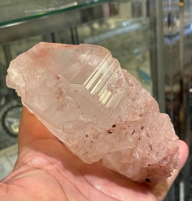 インド ヒマチャルプラディッシュ州 クル山脈マニカラン産、トライゴーニック付きヒマラヤ水晶!超レア♪ ヒマラヤ水晶としてよく見かけるほんのりピンク色をした、現地でアイスクリスタルと呼ばれる水晶です。 氷河の溶けた場所から見つかったと言われています。 トライゴーニックとは水晶の先端を形作るファセットや側面に、レコードキーパー「△」とは反対の下向きの三角形「▽」の刻印が刻まれた非常に珍しい水晶です。レコードキーパーに比べその数は極端に少なく大変貴重とされてます。なかなか手に入ることは出来ません。トライゴーニック・クリスタルはエネルギーやパターンを正しい位置に収めるイニシエーション的なパワーを持つと言われてます。その深く刻まれた下向き三角形の鎖は肉体的な意識と無意識・魂の表現とを結びつけるリンクを象徴しているといわれ、シャーマンの旅への入り口へ導くとも言われてます。 また、天然水晶にはほとんど見られない「C面」が現れるのも、アイスクリスタルの特徴です。C面とは、結晶の長軸に対して垂直な面のことです。天然水晶ではボリビアのアメトリンとアイスクリスタルだけに見られる特徴です。 写真でお分かるように、比較的綺麗に残っているファーセットに深く刻まれたドライゴーニックが沢山連打されてます。いままで噂に出ても見つかることのほとんど無かった貴重な水晶ですので、是非見逃しなく♪ サイズ:120/60/55mm 重さ:538g #トライゴーニッククォーツ#トライゴーニッククリスタル#トライゴーニックヒマラヤ水晶#ヒマラヤ水晶 #マニカラン産ヒマラヤ水晶 #トライゴニック #触像水晶 #トライゴーニッククォーツ #トライゴーニック#エッチドクォーツ