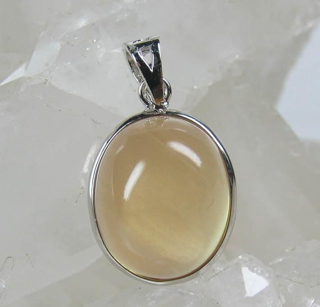 高品質チベット産アンデシン(ラザシン)ペンダントトップです。 透明な琥珀のような黄色にフェルドスパー(長石)特有の美しいアデュラレッセンス効果(シラー)が見られます。 アンデシンはチベットの聖地ラサ近郊で新しく産出された聖石で、「チベットサンストーン」とも呼ばれてます。長石グループに属し、この石はラブラドライトとサンストーンの中間に位置する石です。宝石に出来るグレードの物は、世界に数百しかないと言われるほど超レアな新宝石で、産出量が極めて少なく価格が年々高価になっている貴重な聖石です。 アンデシンは変化と調和という、異なる二つのエネルギーを持つ石であり、 それは自分自身の内面にある本質と、現在の自分における自己矛盾を調和、解決の方向に導き、魂が望む方向へ自然な変化を促す力を持つ石と云われています。 石のみのサイズ:直径約21.5*17mm 厚さ:6.5mm 重さ5g 金具:シルバー925 専用ケース付。 産地:チベット ラサ近郊 ☆天然のものですので、若干不純物、色むら、天然キズがある場合がございますので、予めご了承お願いします。