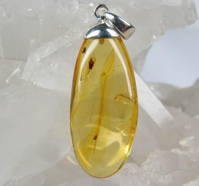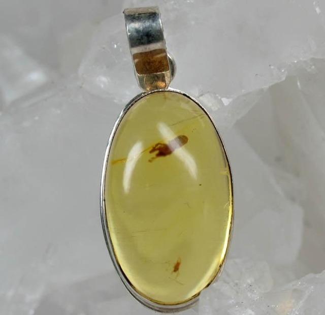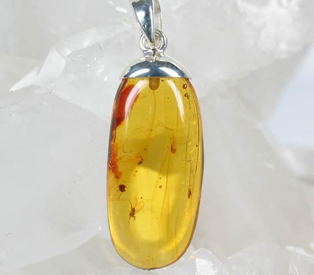 ドミニカ共和国産、虫入り天然琥珀(アンバー)ペンダントトップです。 蜂蜜色の明るい厚みのある琥珀に、肉眼で確認できる虫が2匹います。 何千万年の歳月をかけて、自然がゆったりと育んだ、神秘の虫入り琥珀をどうぞ♪ サイズ:27×14×10mm 重さ:約3g シルバー925製 産地:ドミニカ共和国。 ☆本物保証。鑑別書が必要な方は中央宝石研究所(日本)発行の鑑別書をお付けいたします。別途料金5000円、約1週間お時間頂きます。 ☆天然のものですので若干不純物、色むら、天然キズがある場合がございますので、予めご了承お願いします。