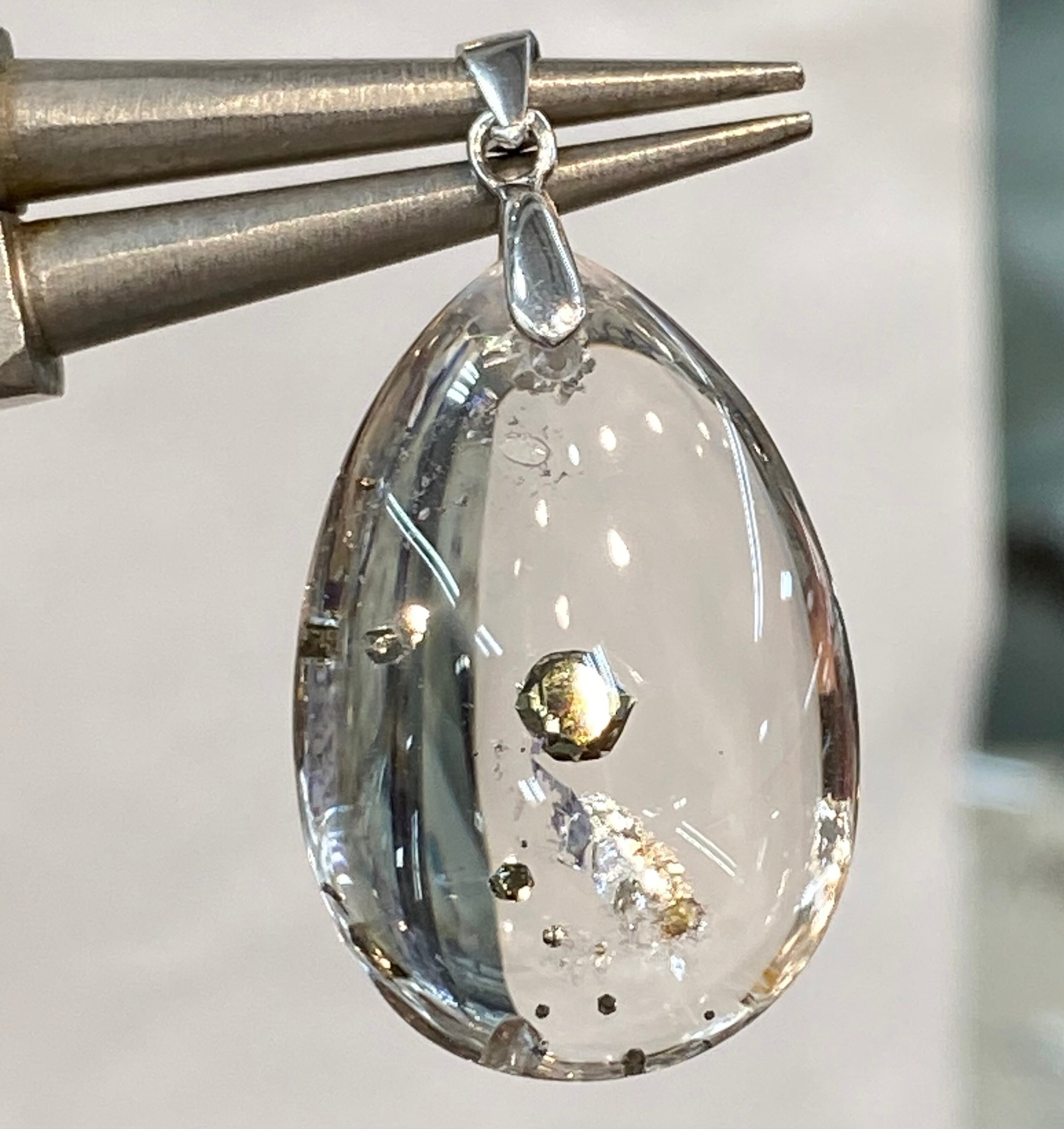 特選!宝石質のパイライトインクォーツ ペンダントトップ。