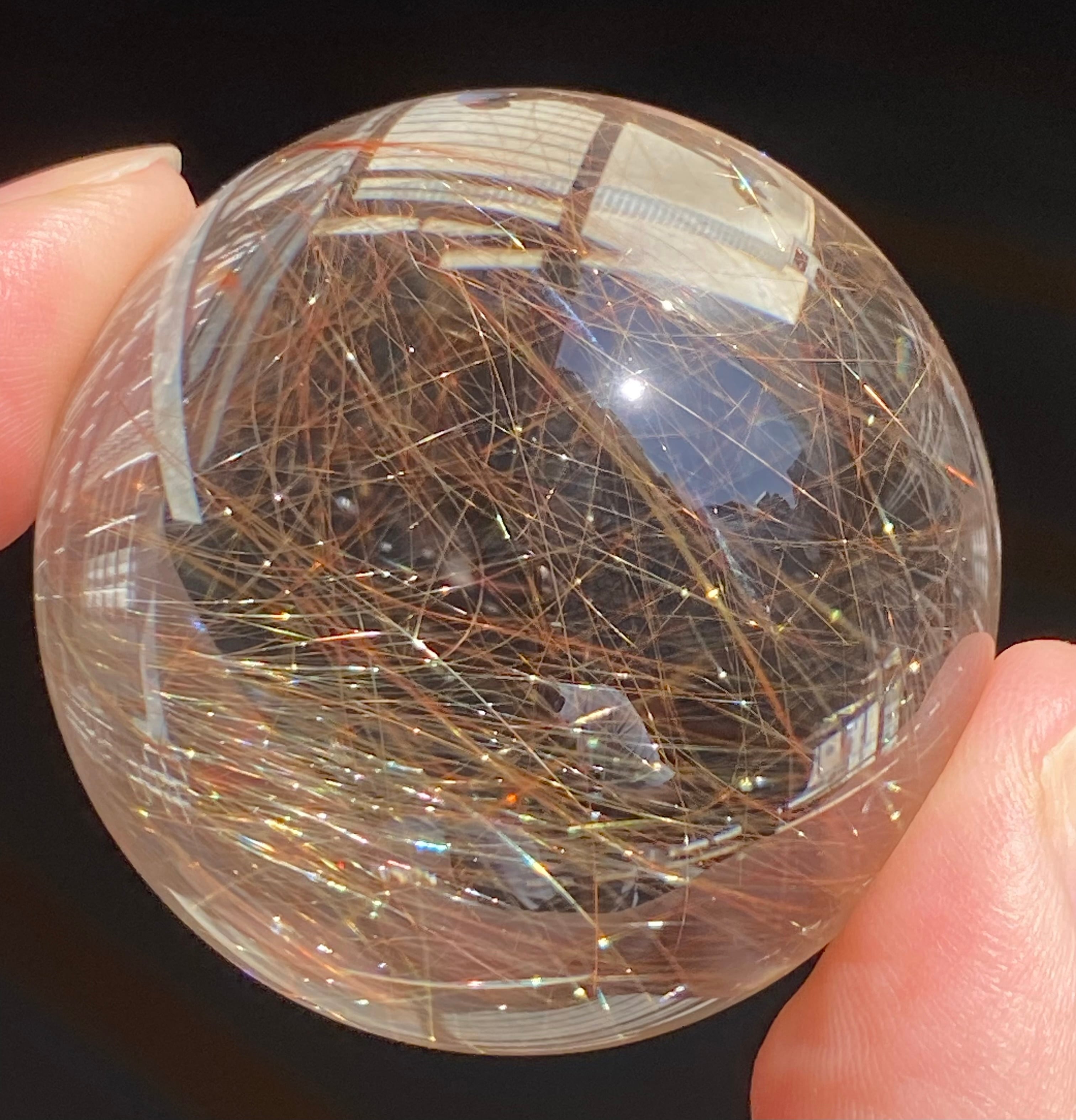 ブラジル産、極上のゴールドルチル水晶丸玉です。