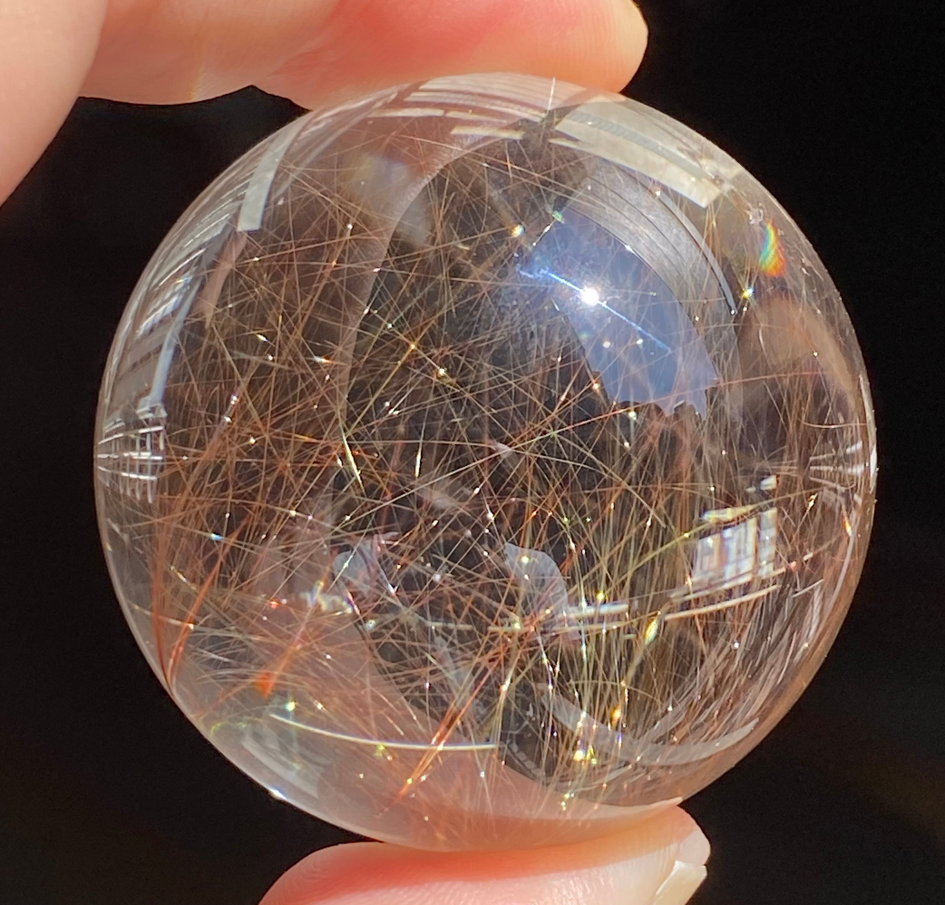 濁りや曇りほぼない透明度抜群のルチルクォーツ丸玉です。