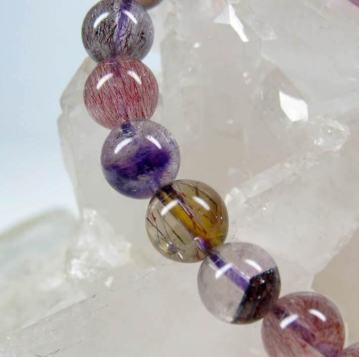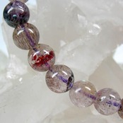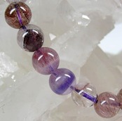 ブラジル・エスピリトサントで採れたスーパーセブンクォーツ ブレスレットです。ブレスレット全体で7種類の鉱物が全部入れるように工夫致しております♪稀少品!特価奉仕品です♪