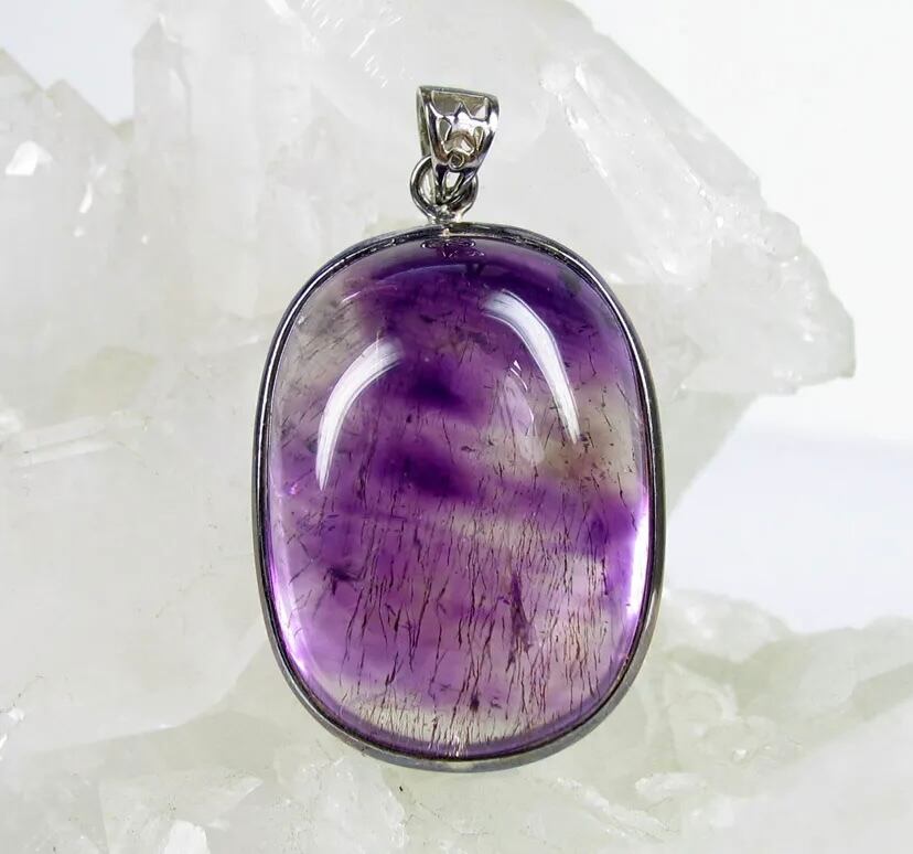 ブラジル・エスピリトサントで採れたスーパーセブンクォーツのペンダントトップです。ゲーサイトの美しい輝きを写真ではなかなか表現する事ができておりません。実物の方がもっと上品な濃い紫色をしてます。ボリューム満点の逸品です♪