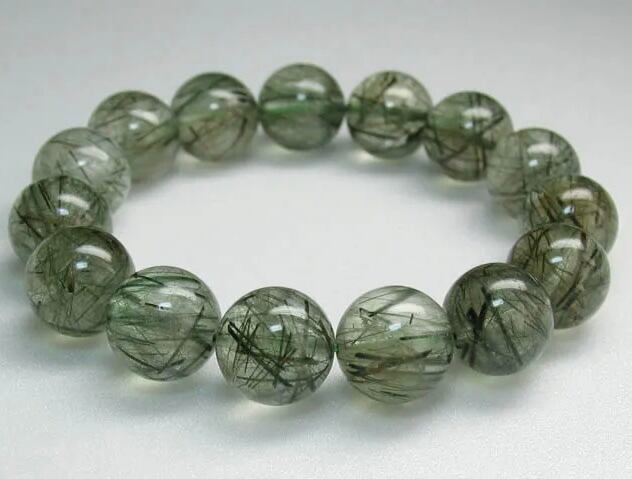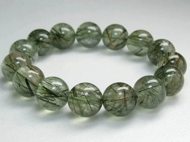 グリーンルチル水晶ブレスレット 14.5mm 0589