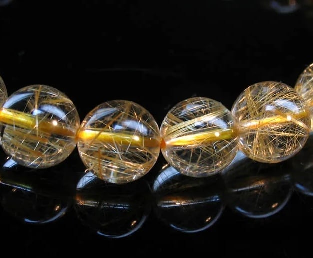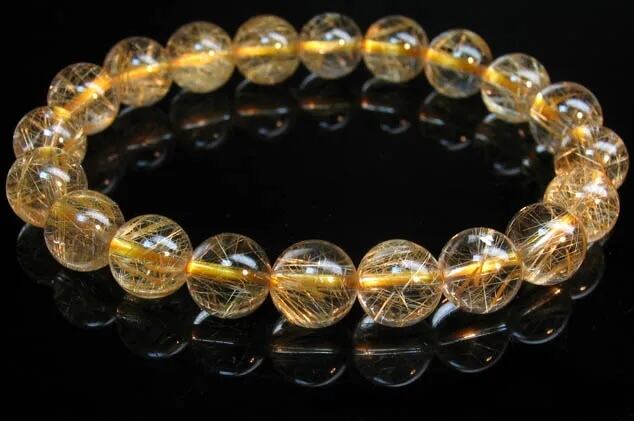 高品質ゴールドルチル水晶ブレスレット9mm☆B711