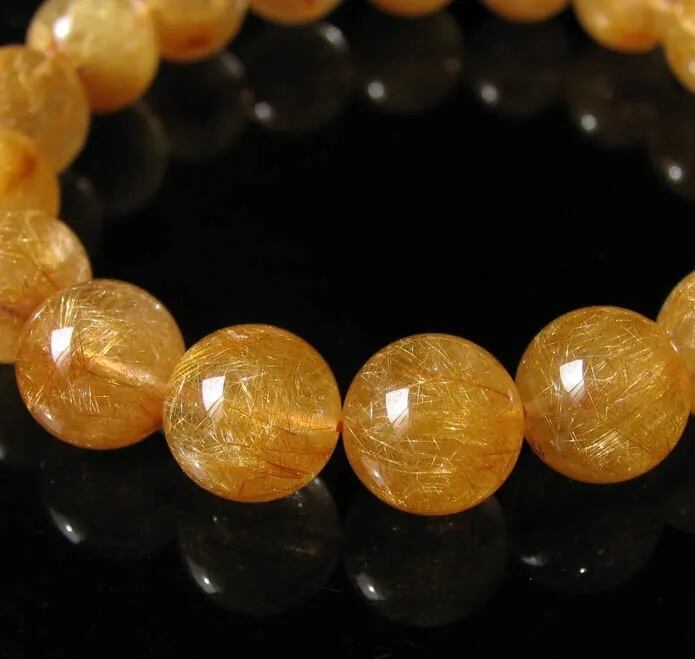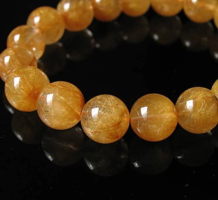 ゴールドルチル水晶ブレスレット12mm特価奉仕品☆F02