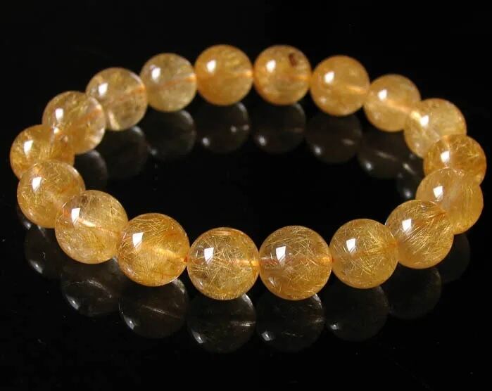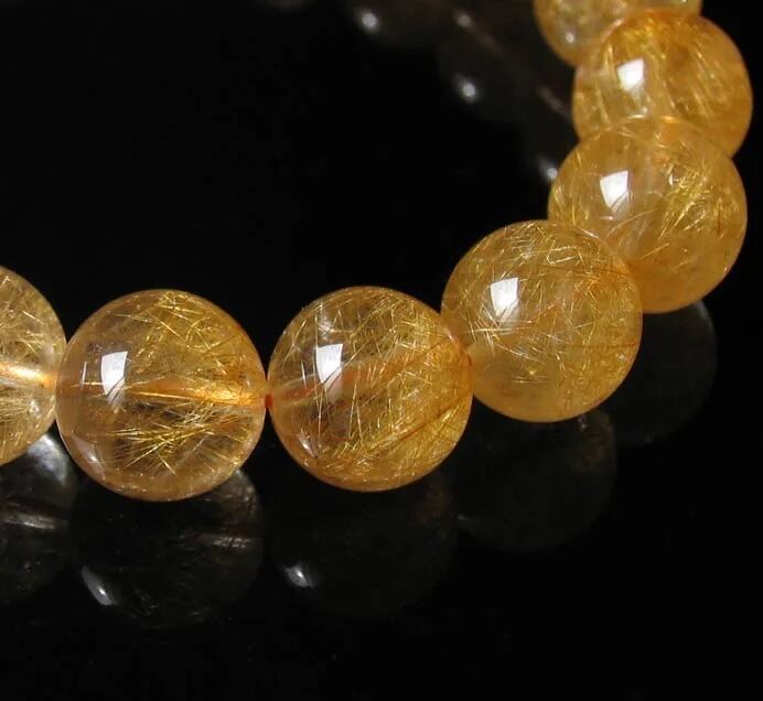 ゴールドルチル水晶ブレスレット12mm特価奉仕品☆F027
