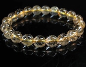 ゴールドルチル水晶ブレスレット9mm高品質☆E087