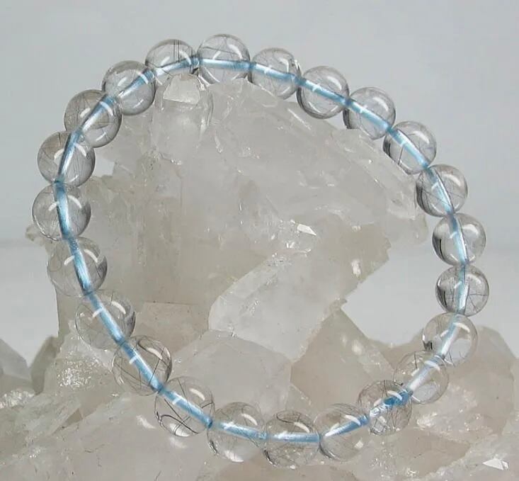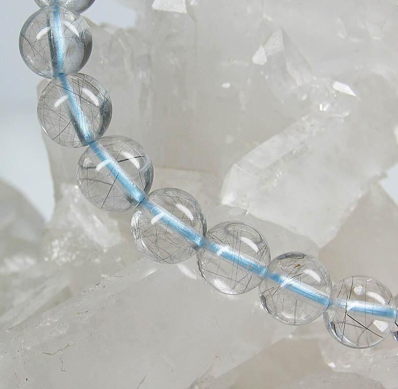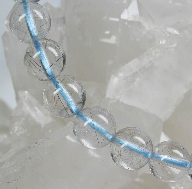 高品質!ブルールチルクォーツ(藍針水晶)ブレスレットです。透明度抜群で、光にすかすと内包された針には黒っぽさの中にうっすらと藍味が感じられ、 とても美しいものです。