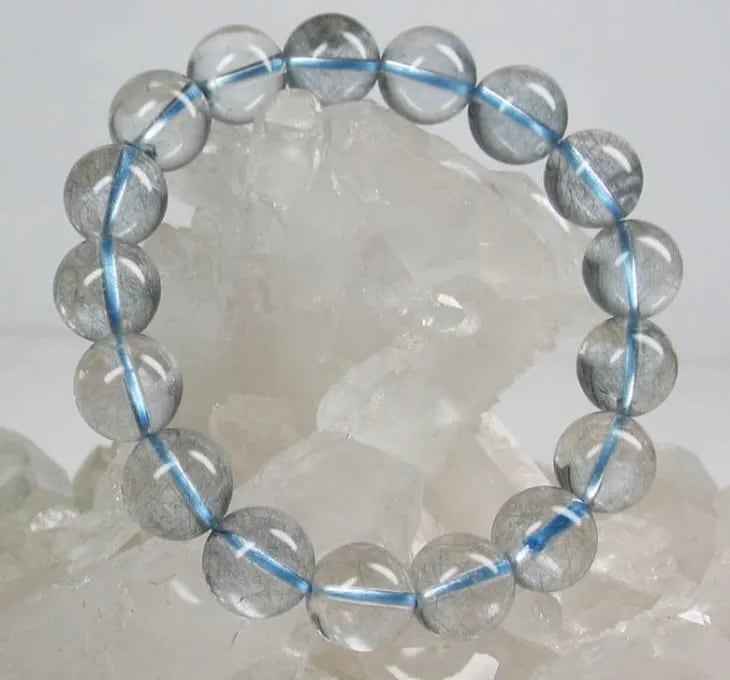 高品質!ブルールチルクォーツ(藍針水晶)ブレスレットです。透明度抜群で、光にすかすと内包された針には黒っぽさの中にうっすらと藍味が感じられ、 とても美しいものです。