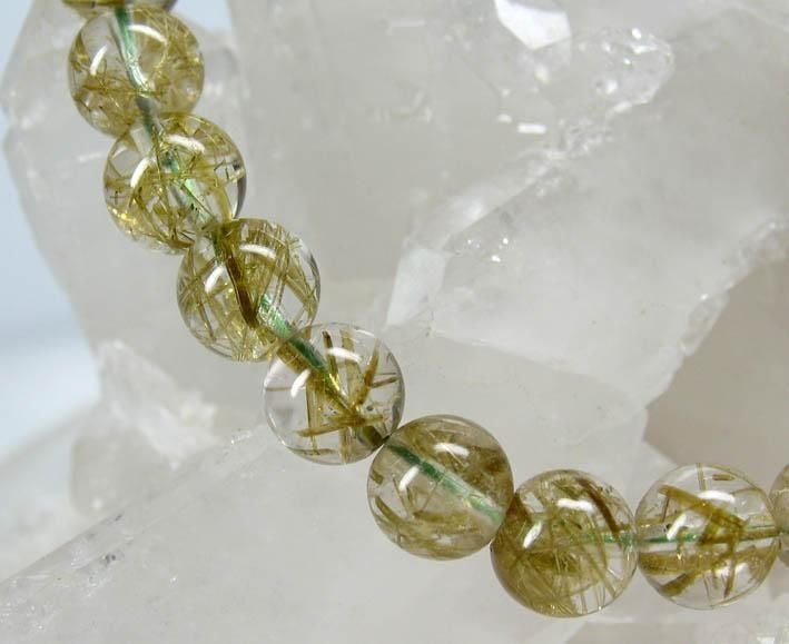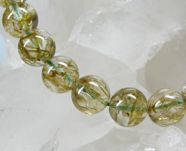 グリーンルチル水晶ブレスレット7.5mmD638