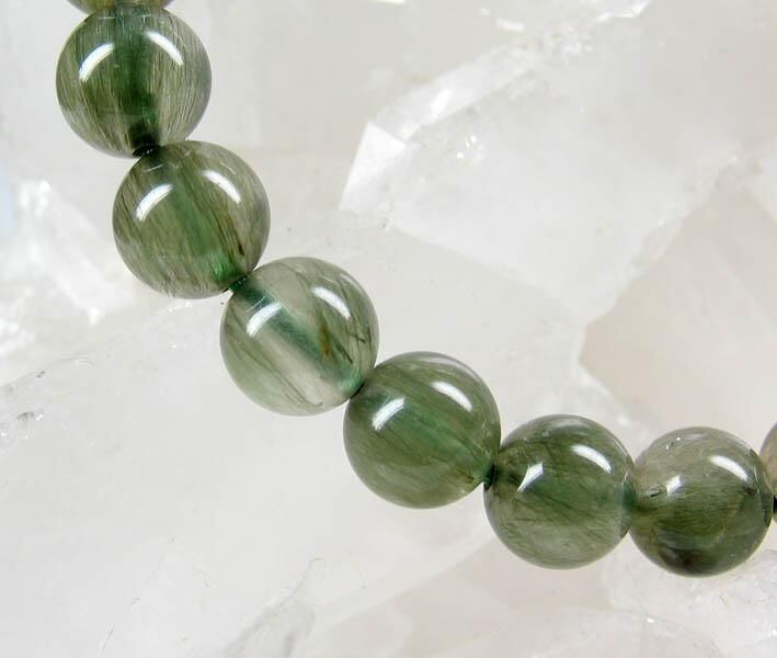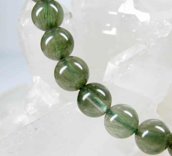 ブラジル産、極上のグリーンルチルクォーツ(緑針水晶)ブレスレットです。