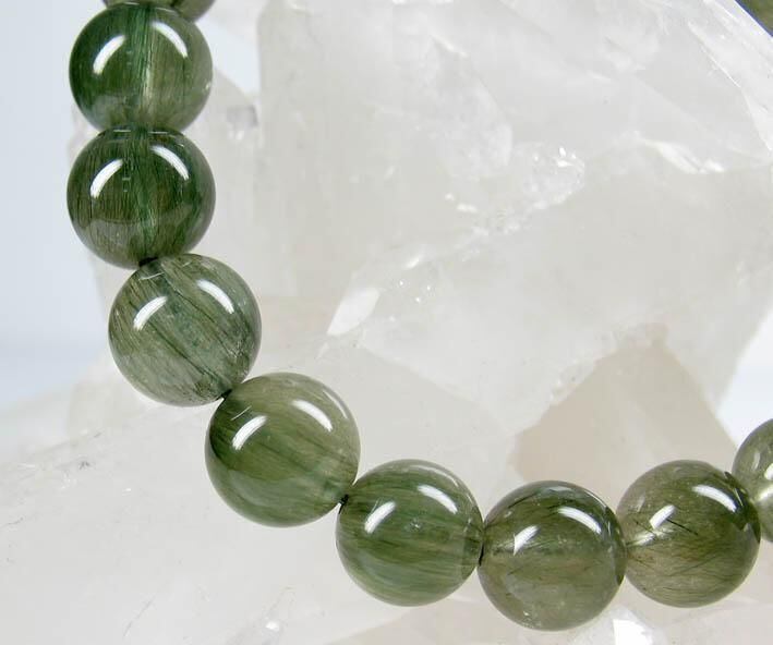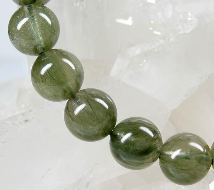 ブラジル産、極上のグリーンルチルクォーツ(緑針水晶)ブレスレットです。