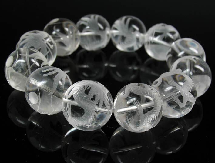 龍彫天然水晶ブレスレット 手彫り【龍】17.5mm 縁起物 風水