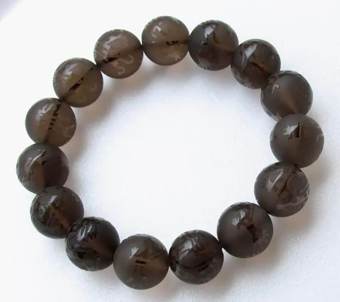 龍彫天然スモーキークォーツ ブレスレット 手彫り 14mm