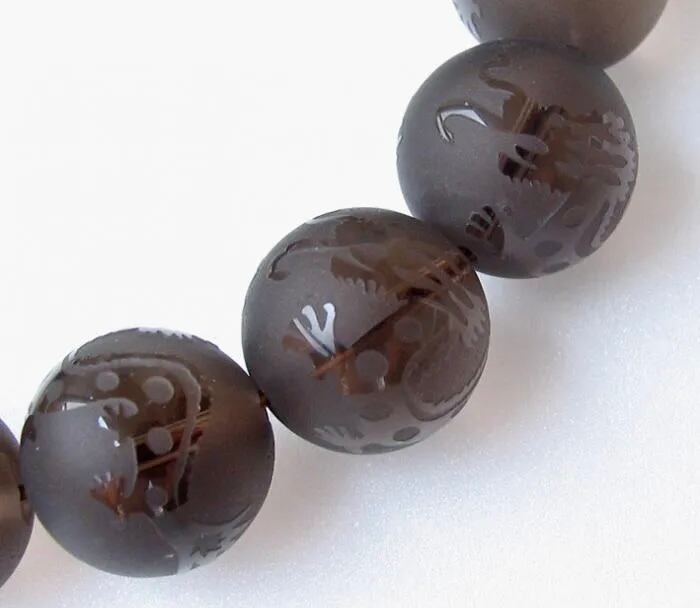 天然スモーキークォーツ(茶水晶)に【龍】を一つ一つ掘り込んだブレスレットです。手彫りで細部にまで丁寧な仕上げが施されています。
