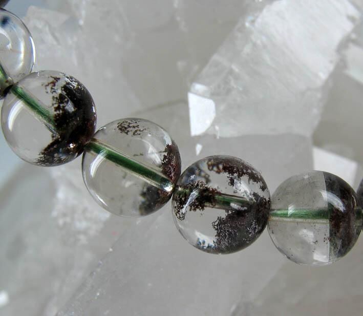 極上のガーデン水晶ブレスレットです。写真では分かりにくいですが、透明度抜群の天然水晶と綺麗なガーデンのハーモニーが実に美しいです♪