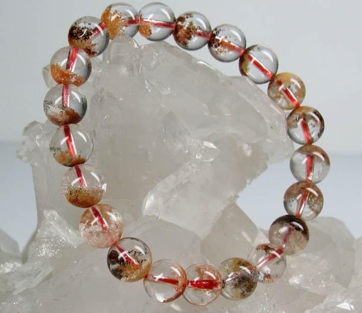 極上のガーデン水晶ブレスレットです。写真では分かりにくいですが、透明度抜群の天然水晶と綺麗なガーデンのハーモニーが実に美しいです♪