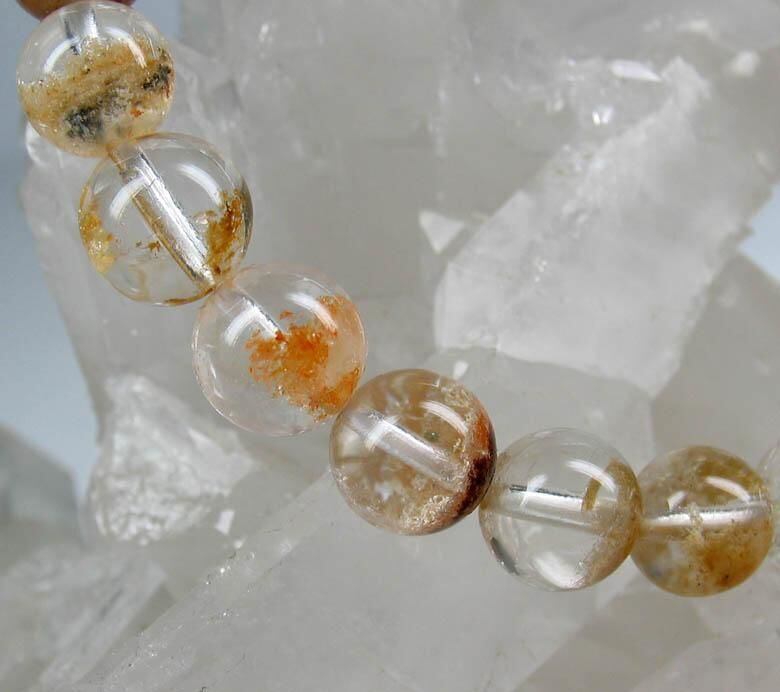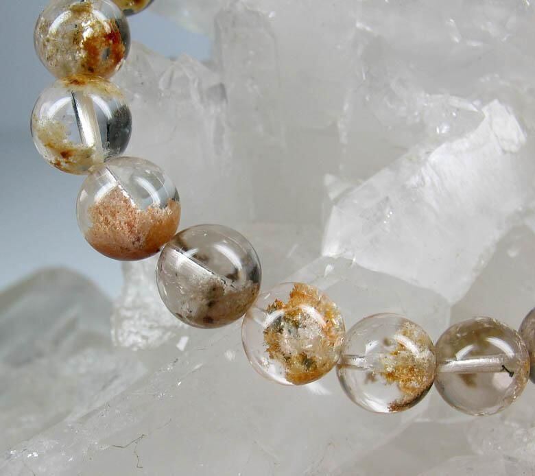 極上のガーデン水晶ブレスレットです。写真では分かりにくいですが、透明度抜群の天然水晶と綺麗なガーデンのハーモニーが実に美しいです♪