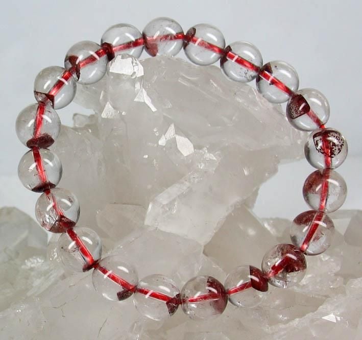 数千万年に渡り水晶が成長していく過程で、その中に含まれた苔、サンゴなどの含有物が幻のような景色を作り出し、水晶の中でも強いパワーを持っているもので貴重に扱われます。身につける人の潜在能力を開発し、心と体を両面から癒してくれる石としても知られています。また、日々の努力を成功へと導く、強い開運効果もあるとされています。
