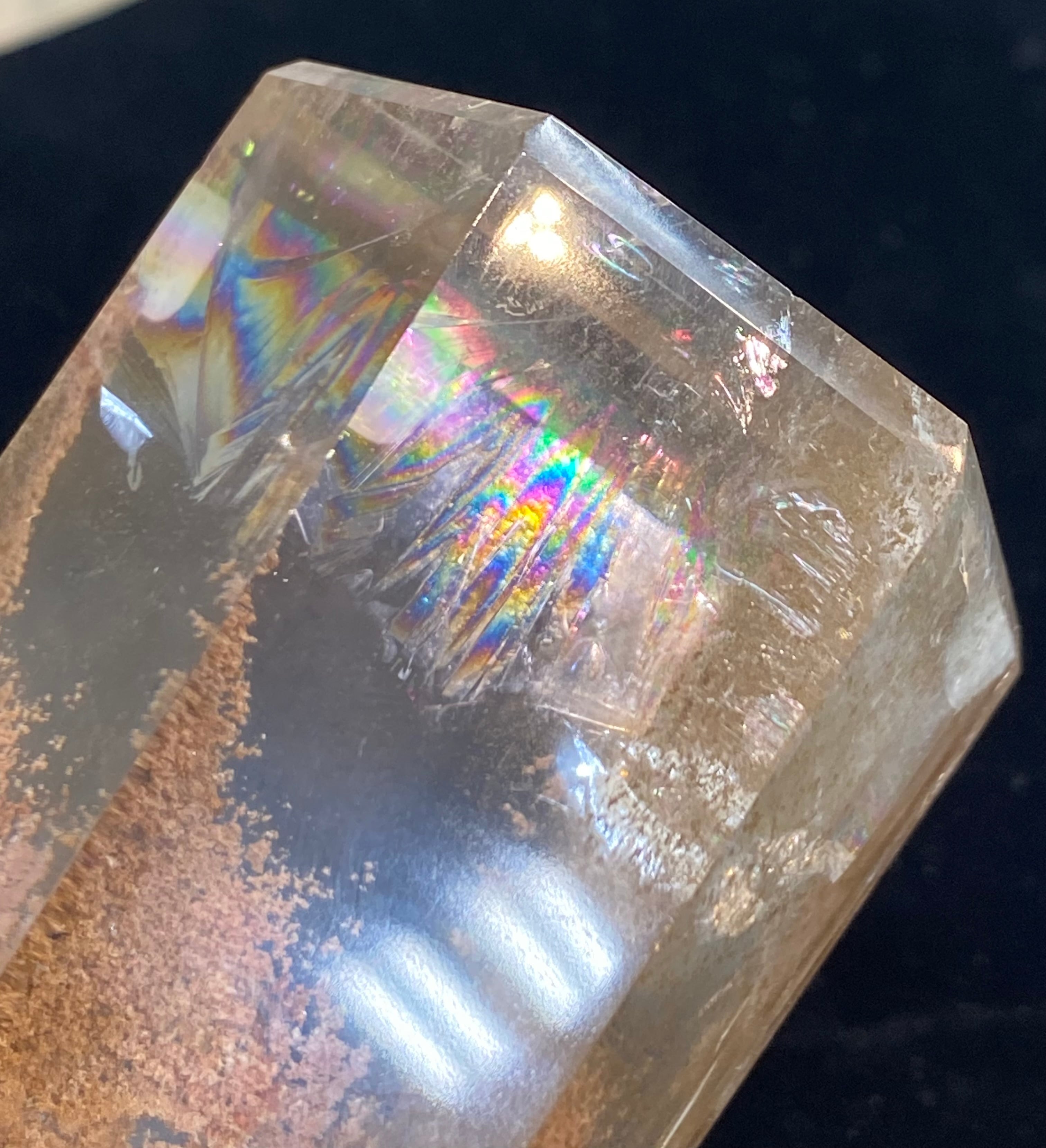 茶色の鉱物はマンガン系の鉱物と思われますが、幾重も重なり合って、立派な富士山を形成してます。綺麗なレインボーも確認できます♪
