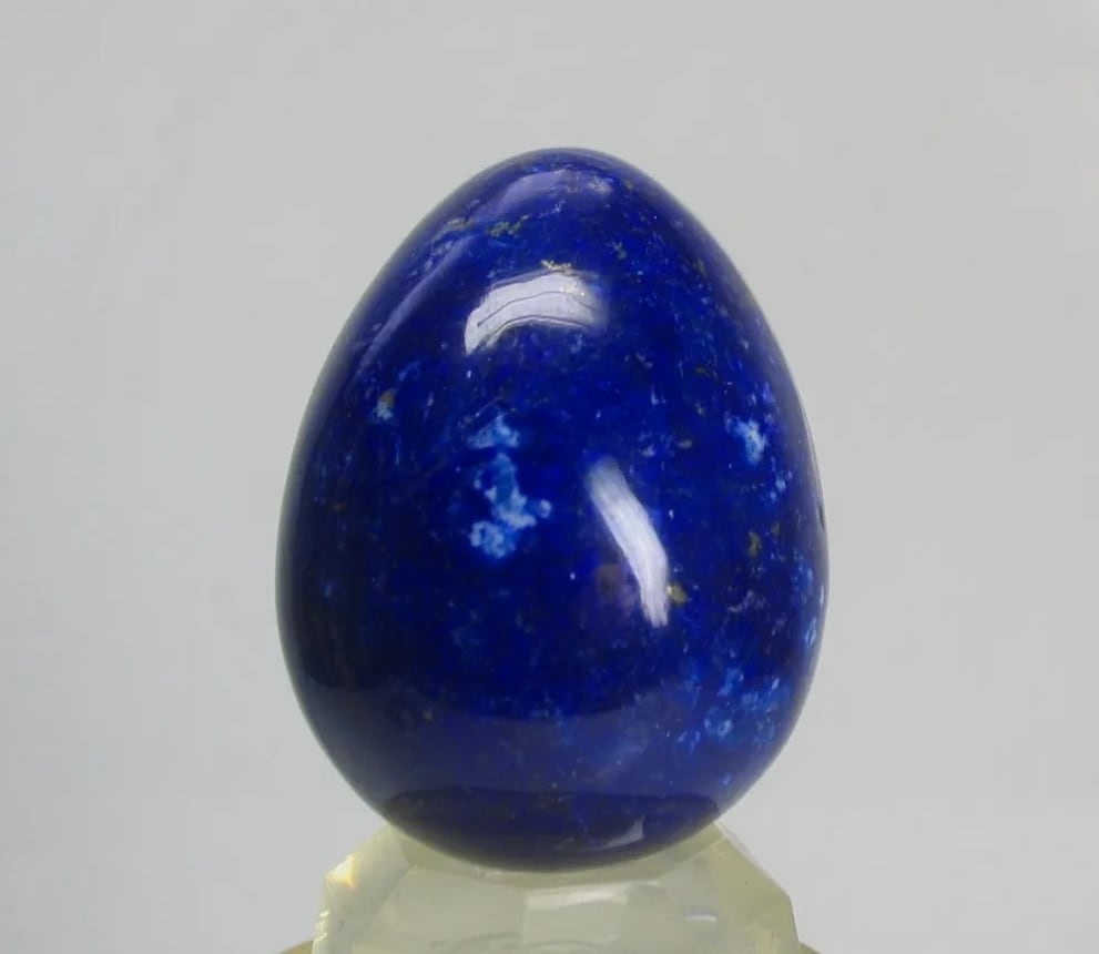 アフガニスタン産の品質の高い、青白く浮かび上がるような青さを持った極上のラピスラズリ エッグです。実物はもっとディープブルーです。角度によって様々な表情を楽しめるラピスラズリの卵型です。。是非お見逃しなく♪特選品!