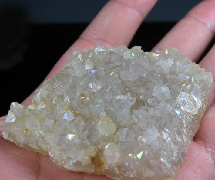 この水晶は撮影が非常に難しい石で、写真では虹があまり見られませんが、見る向きによって、ほぼすべてのポイントに綺麗な虹色が見られます。