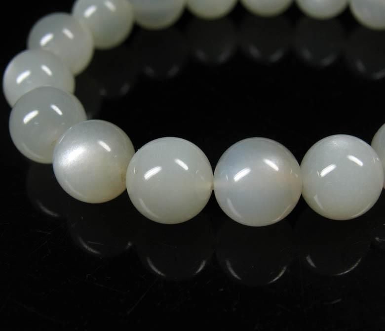 上質ムーンストーンブレスレットです。すべての珠に美しい銀色のアデュラレッセンス効果(シラー)が見られる、とても魅力的なムーンストーンのブレスレットです。