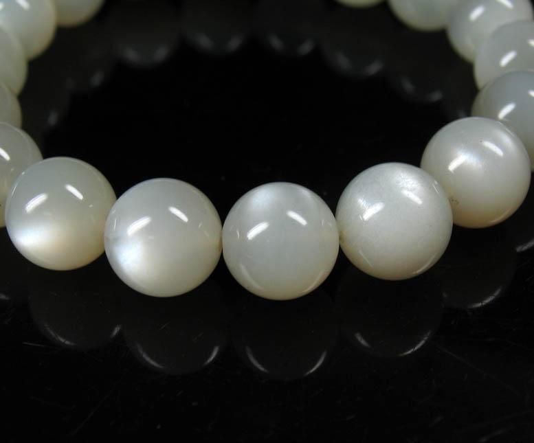 上質ムーンストーンブレスレットです。すべての珠に美しい銀色のアデュラレッセンス効果(シラー)が見られる、とても魅力的なムーンストーンのブレスレットです。