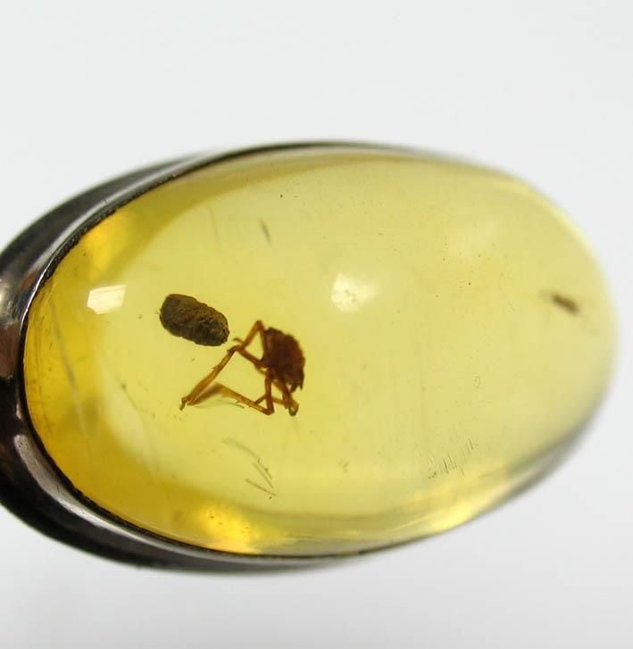 蜂蜜色の明るい厚みのある琥珀に、肉眼で確認できる虫が2匹います。