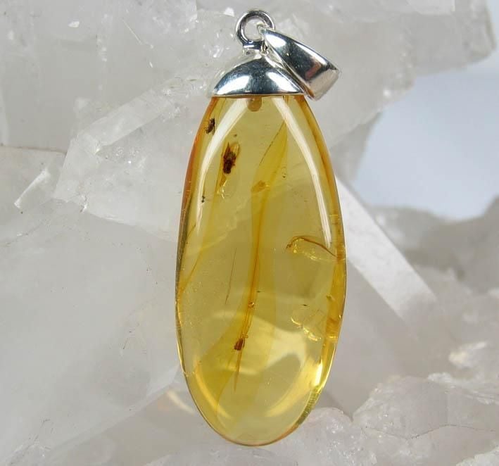 ドミニカ共和国産、虫入り天然琥珀(アンバー)ペンダントトップです。