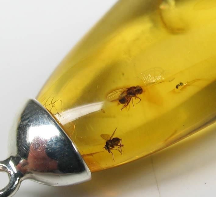 蜂蜜色の明るい厚みのある琥珀に、肉眼で確認できる虫が2匹います。