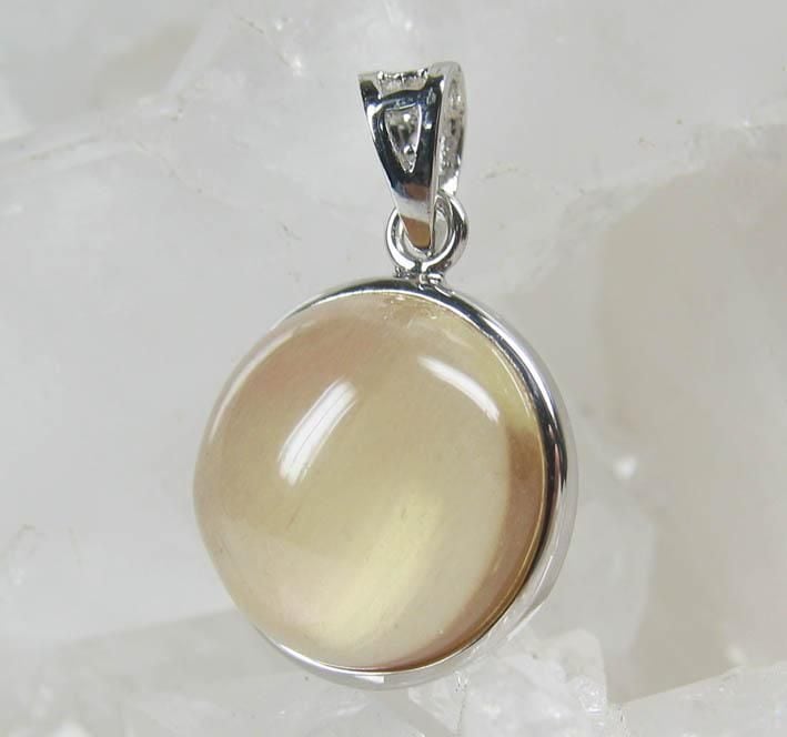 透明な琥珀のような黄色にフェルドスパー(長石)特有の美しいアデュラレッセンス効果(シラー)が見られます。