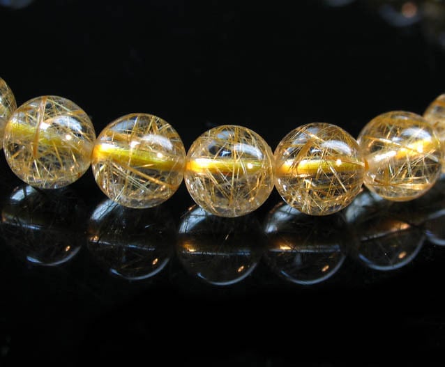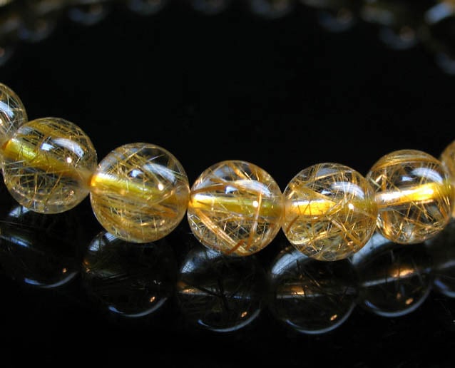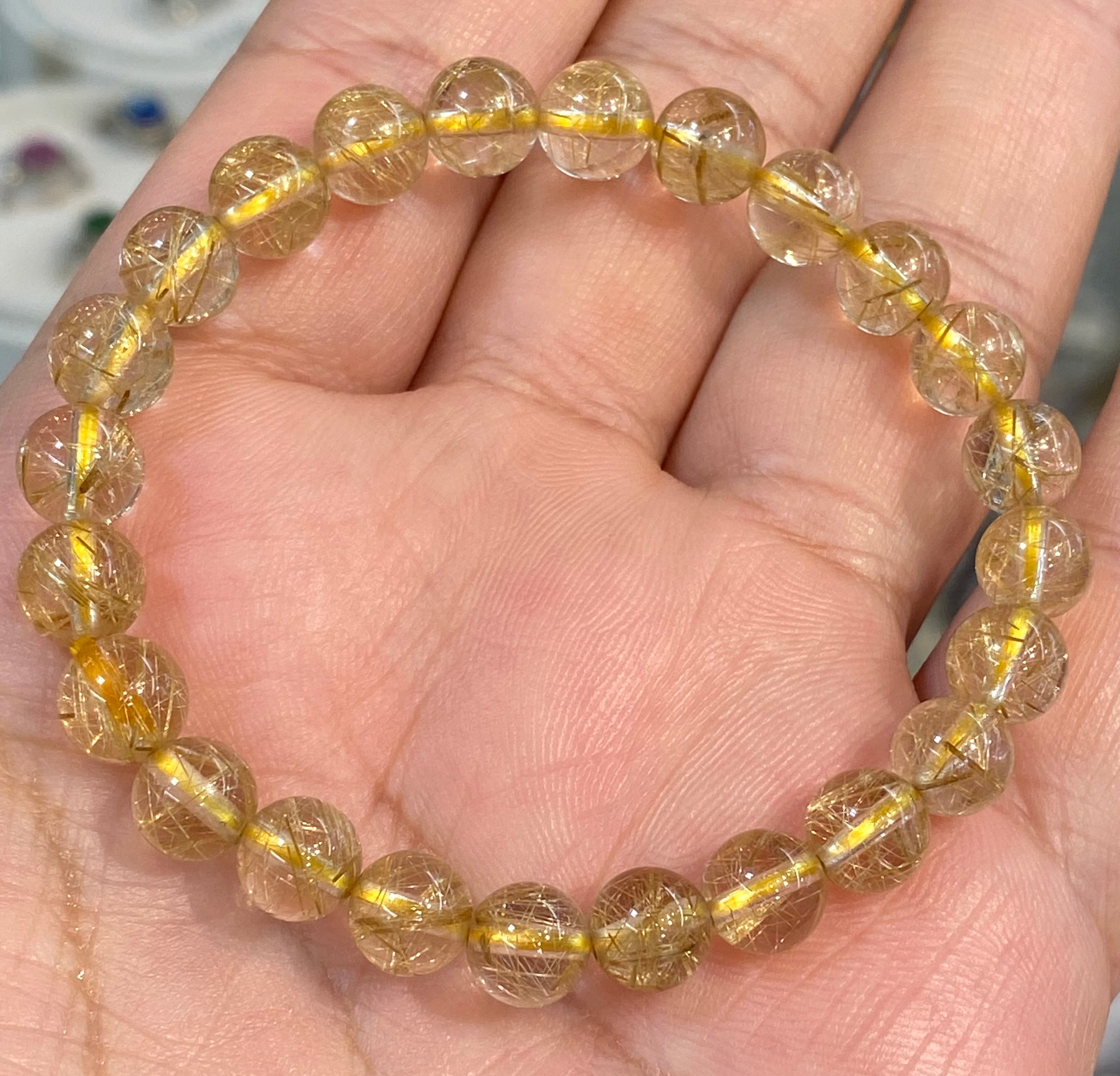 高品質ゴールドルチル水晶ブレスレット7.8mm☆B702
