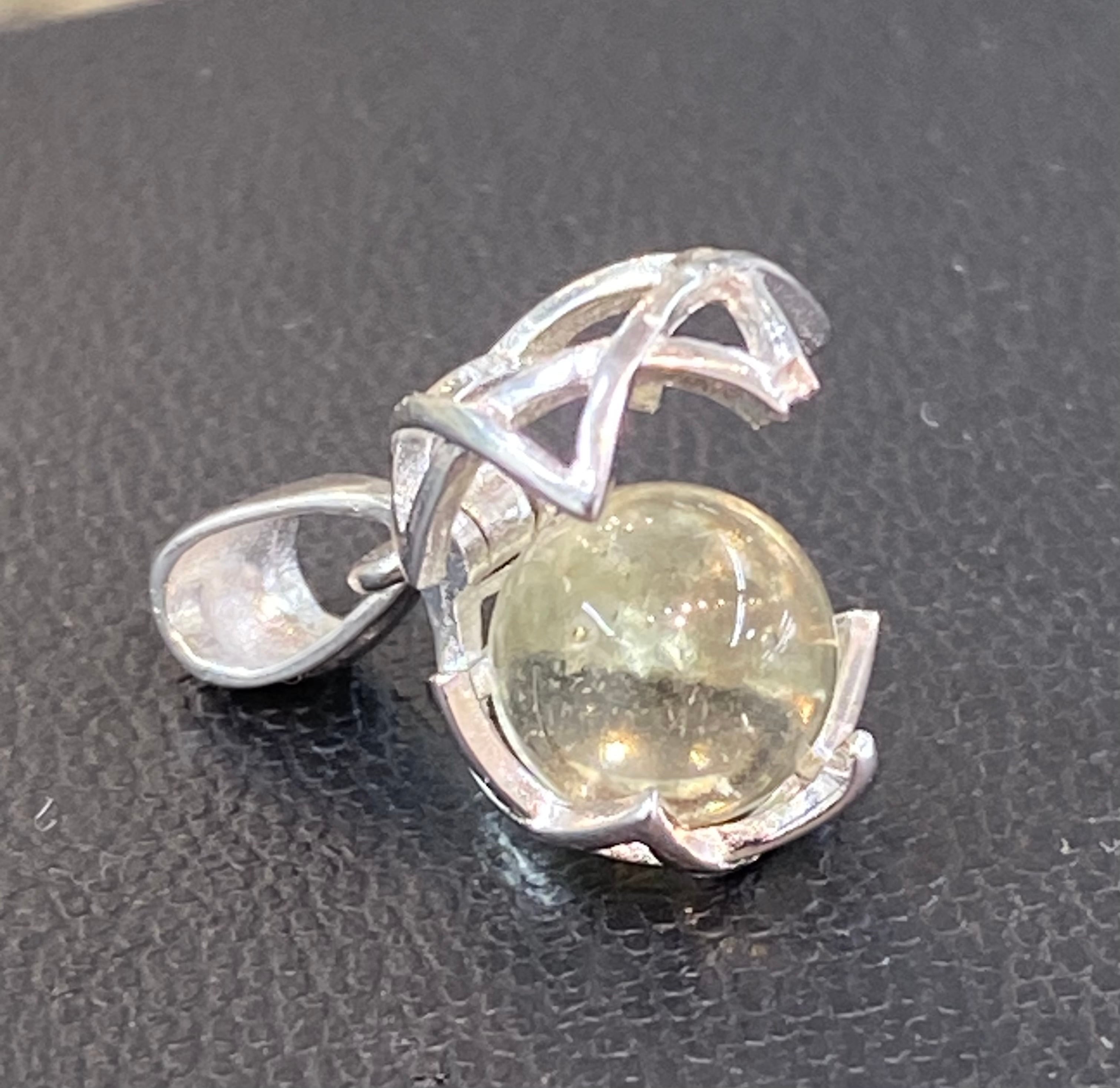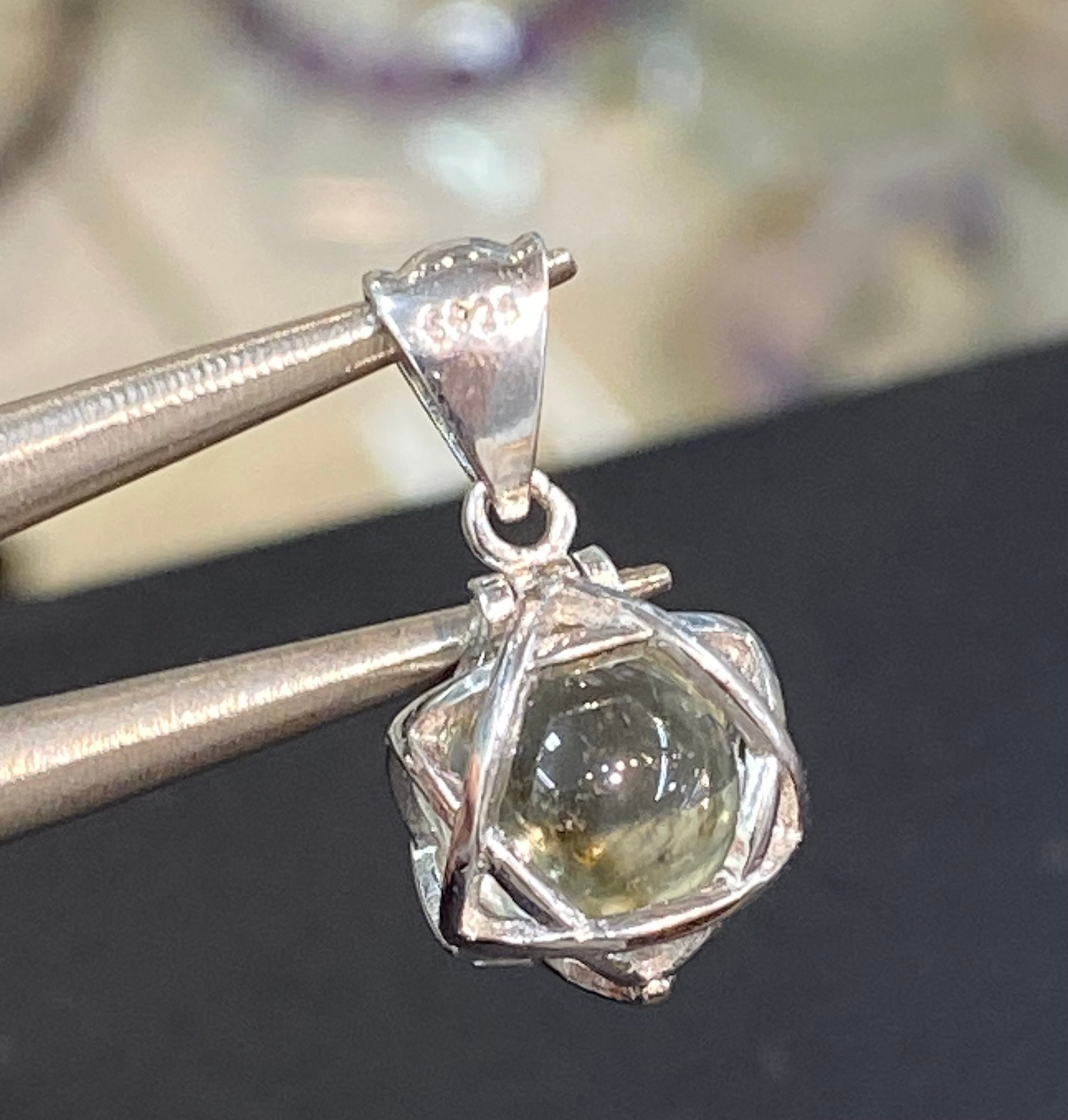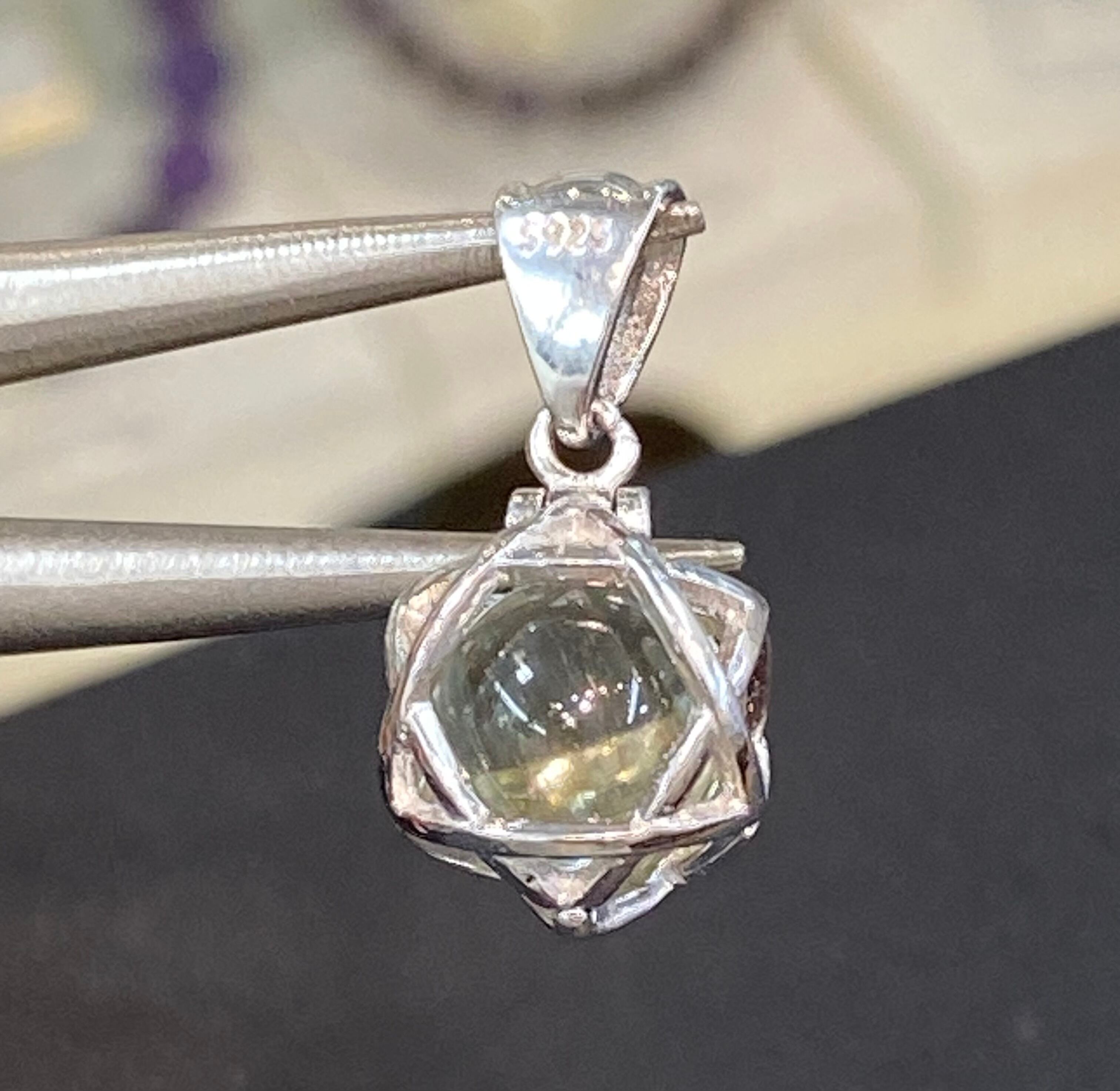 最高グレードの天然リビアングラス珠をシルバー925 の六芒星型枠に入れたペンダントトップです♪