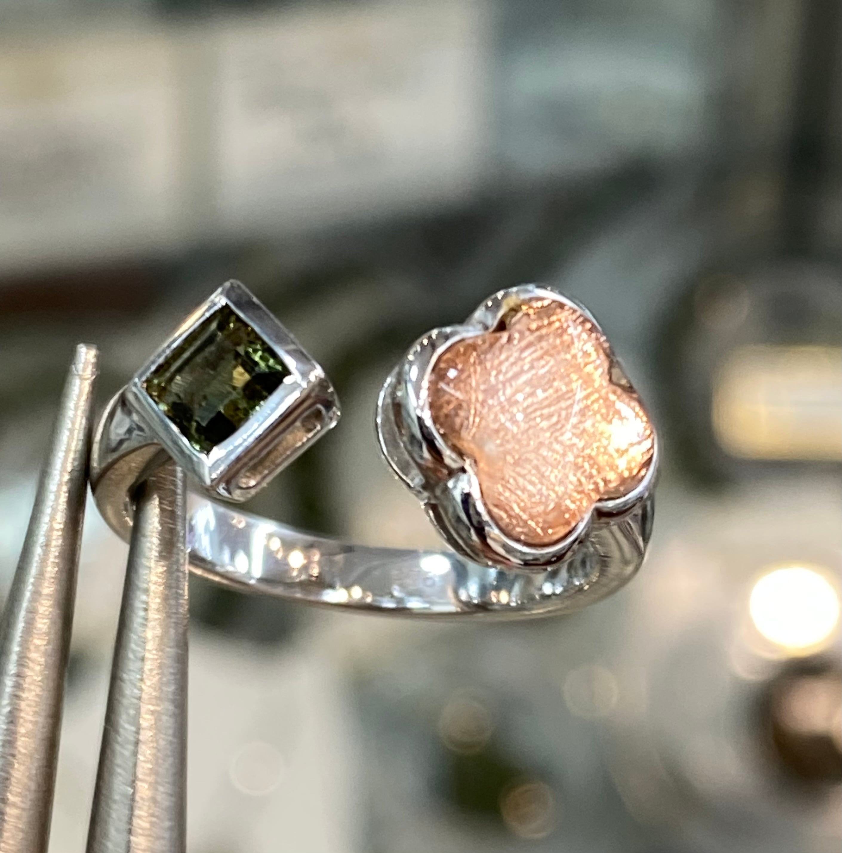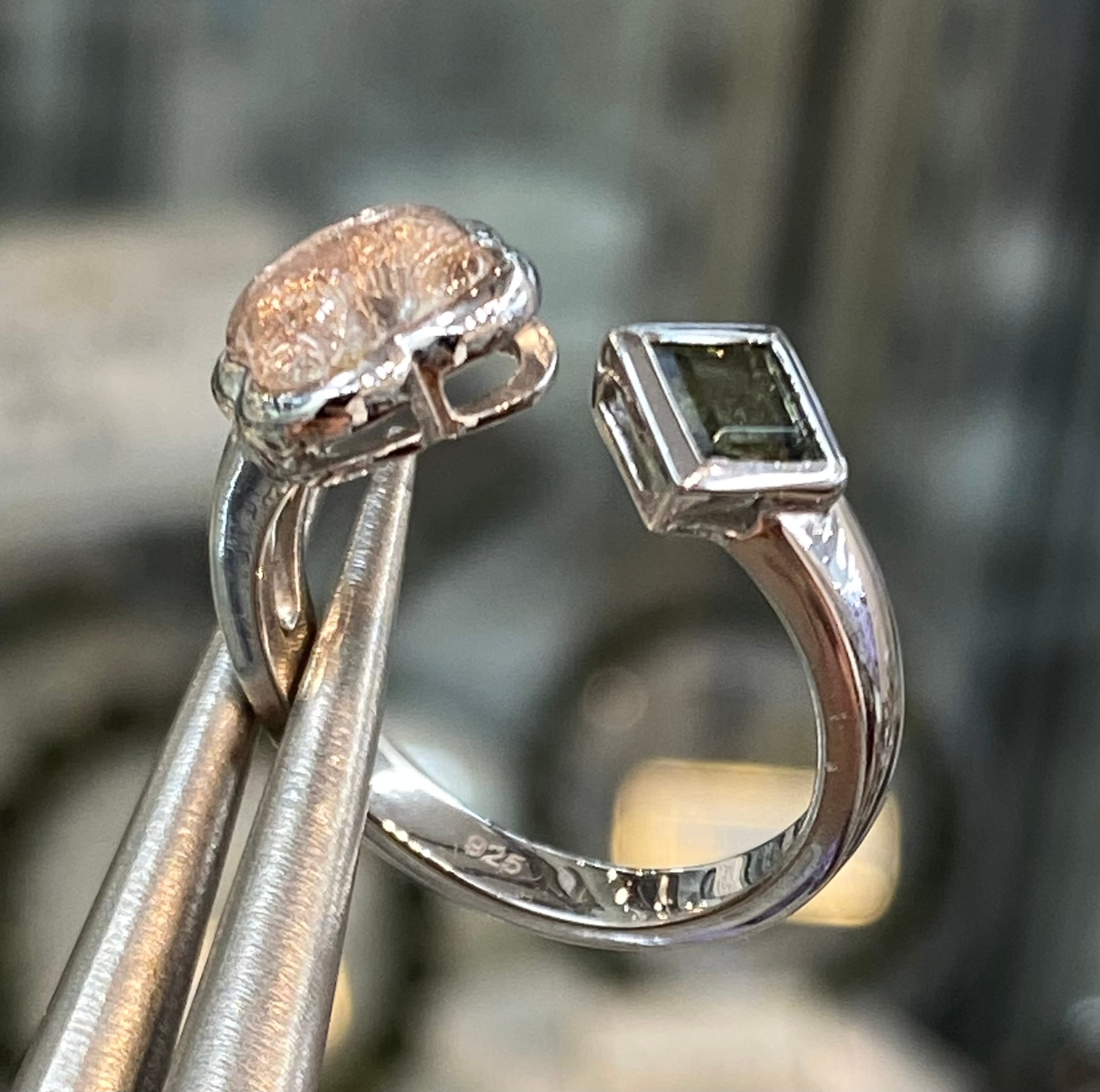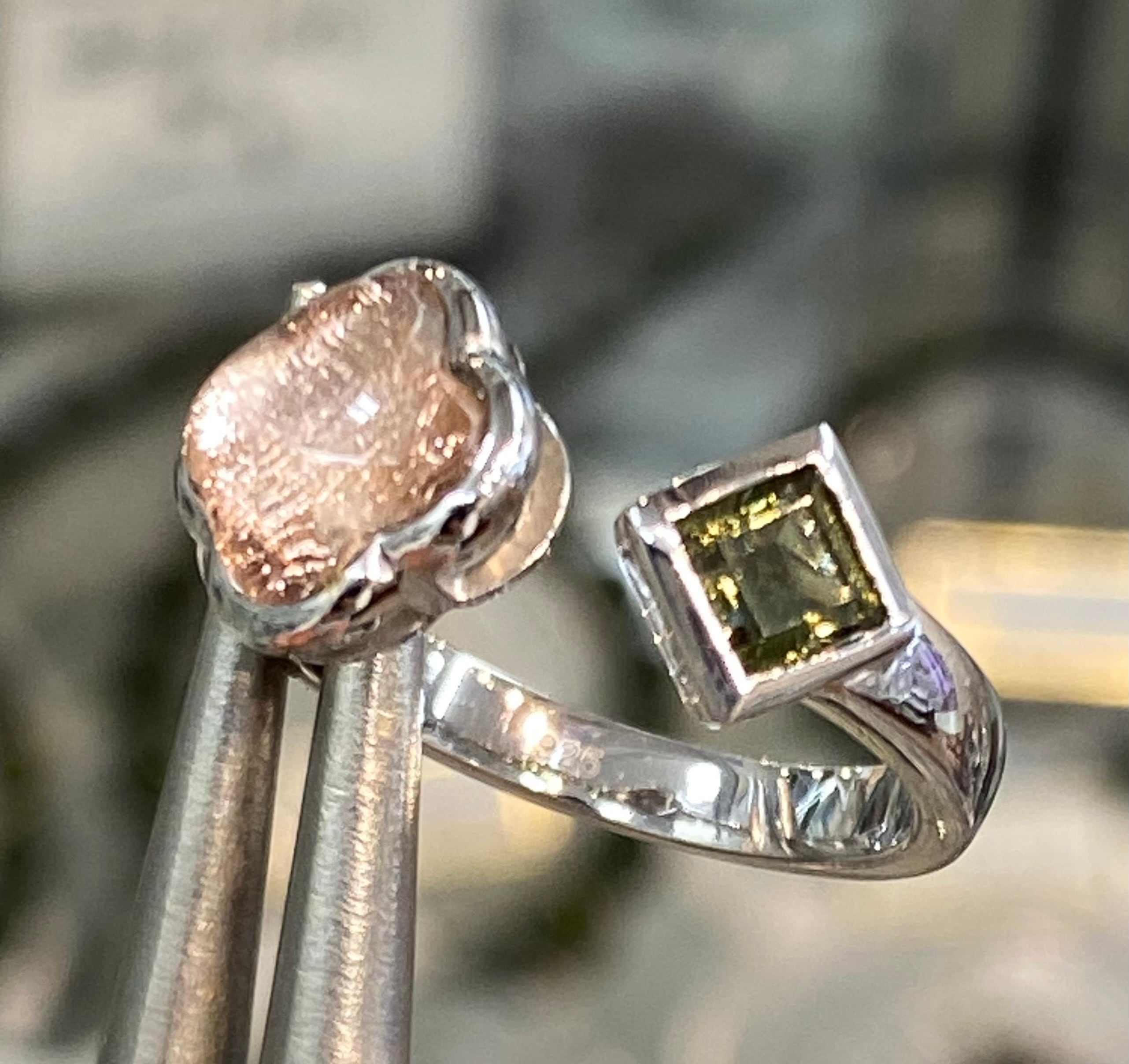 特選!高品質モルダバイトとギベオンで作ったリングです。