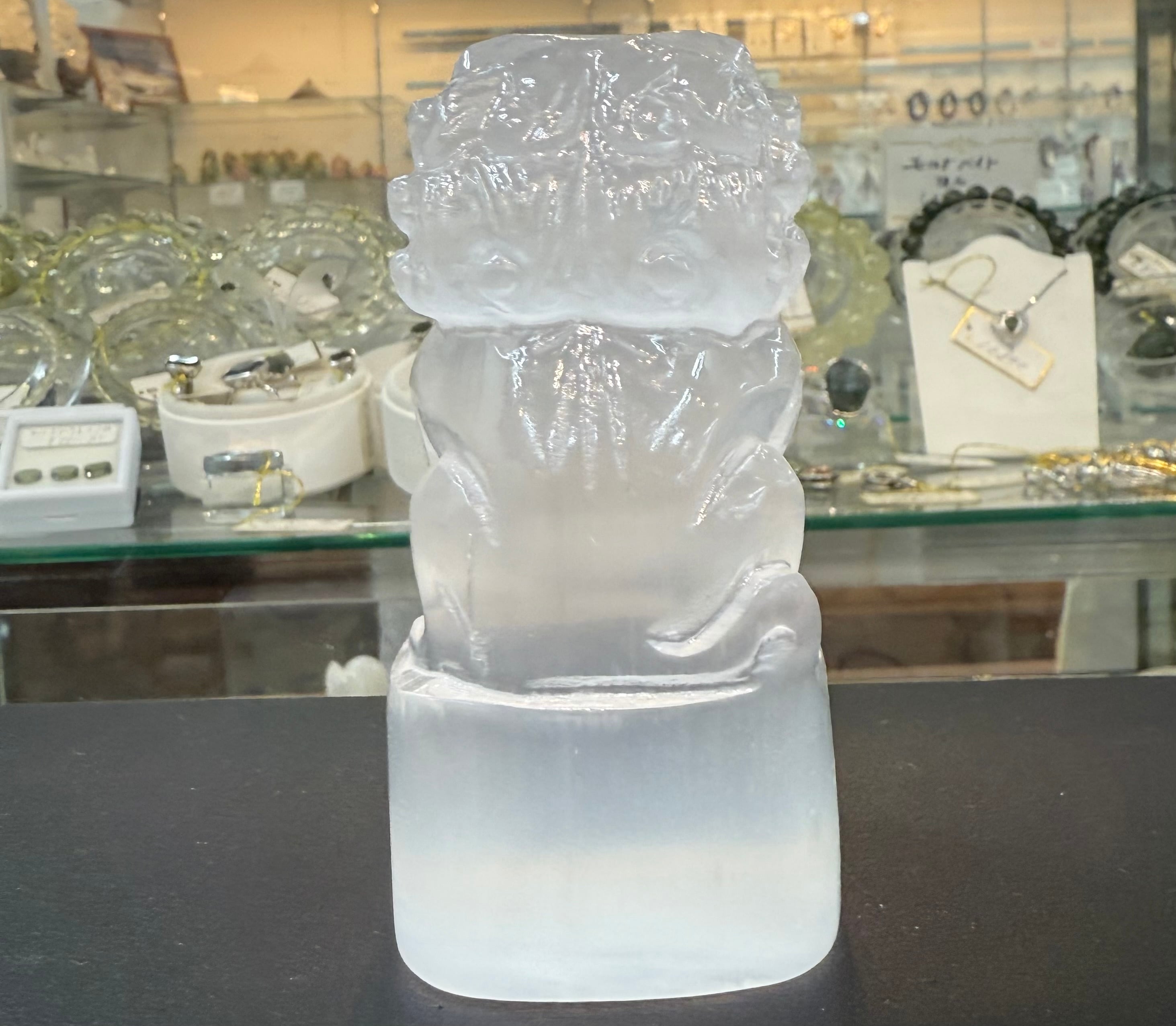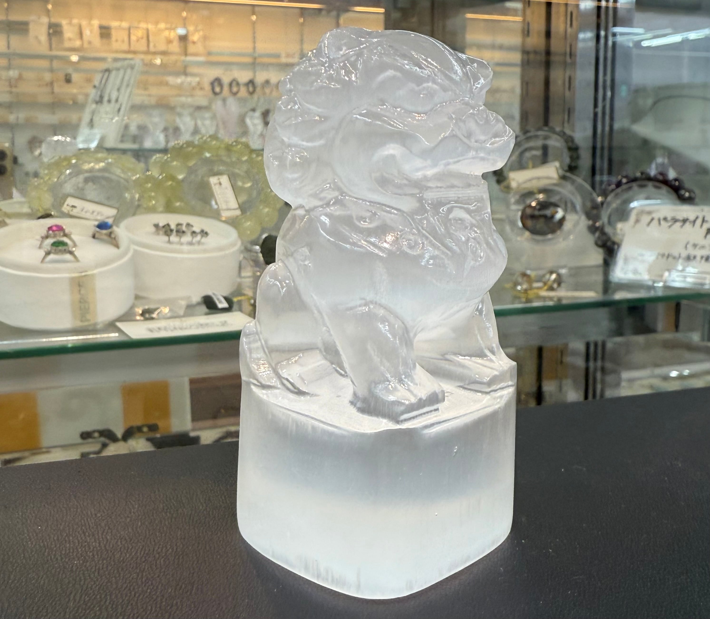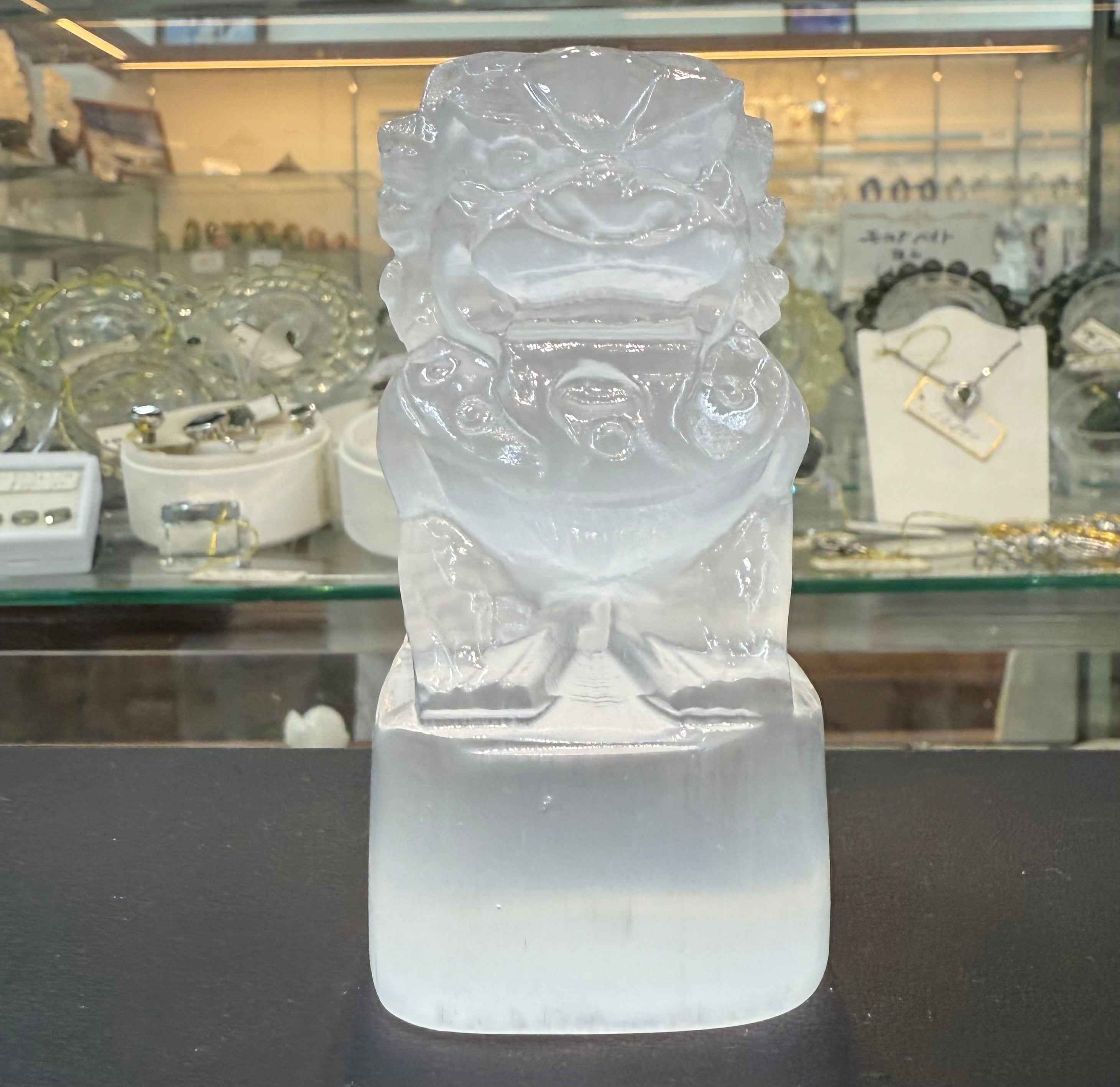 天然セレナイト獅子 セレナイトのシーサー 透石膏の獅子 彫り物彫刻縁起物