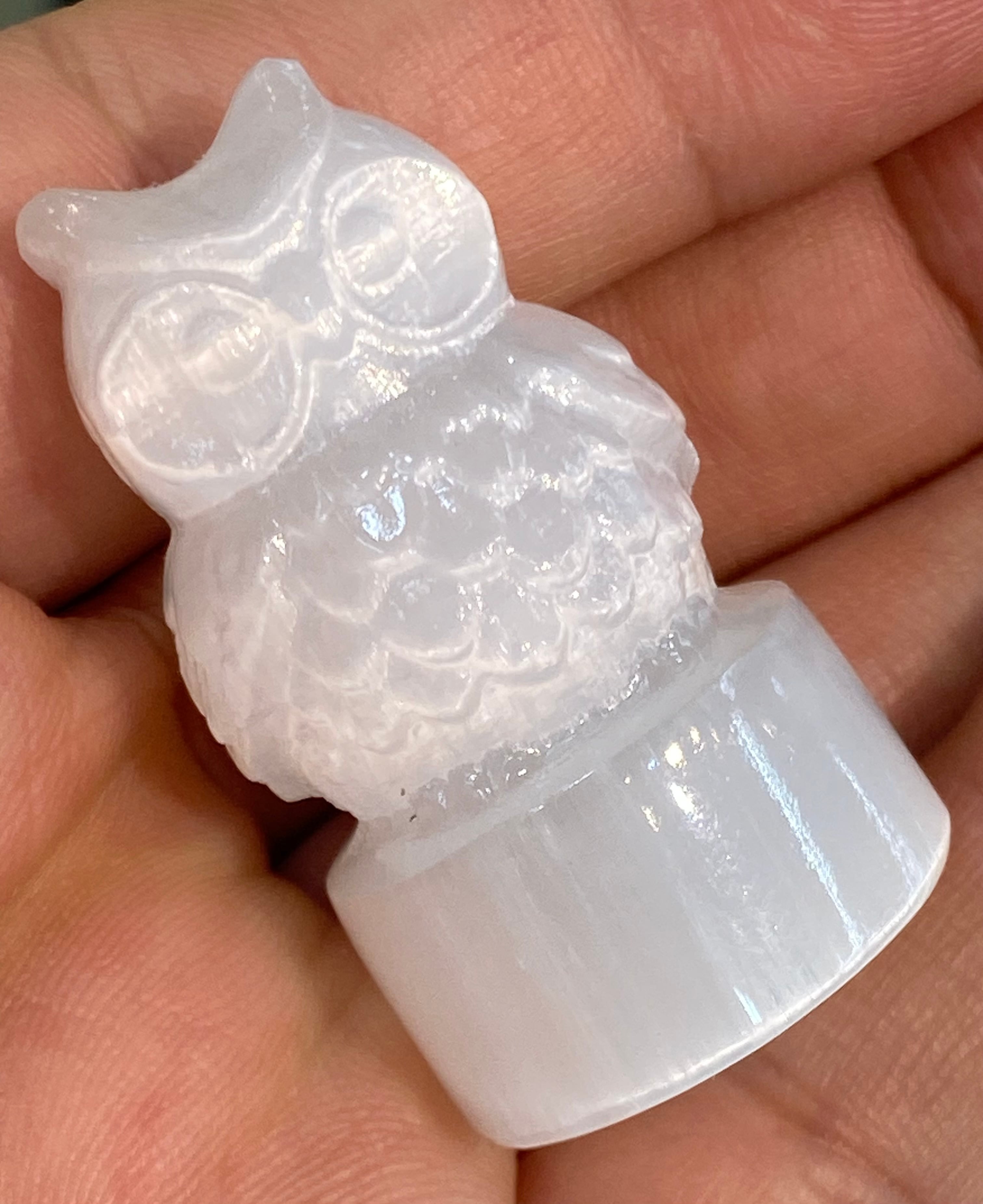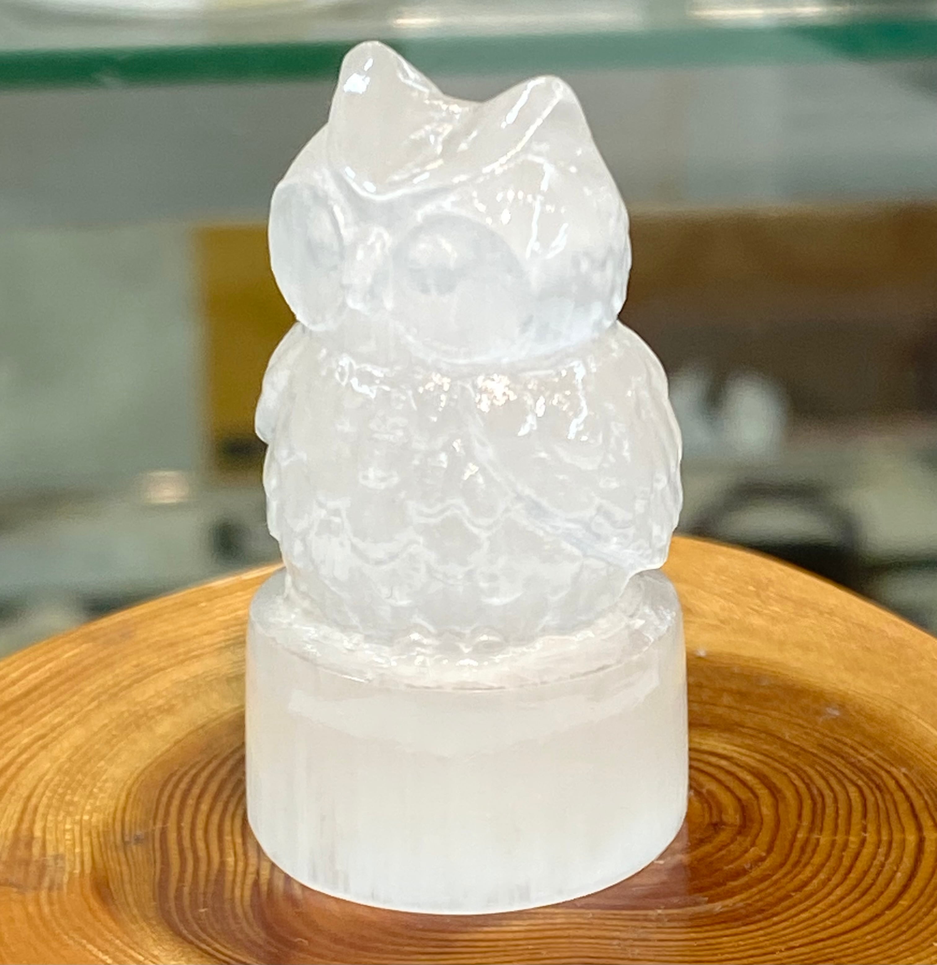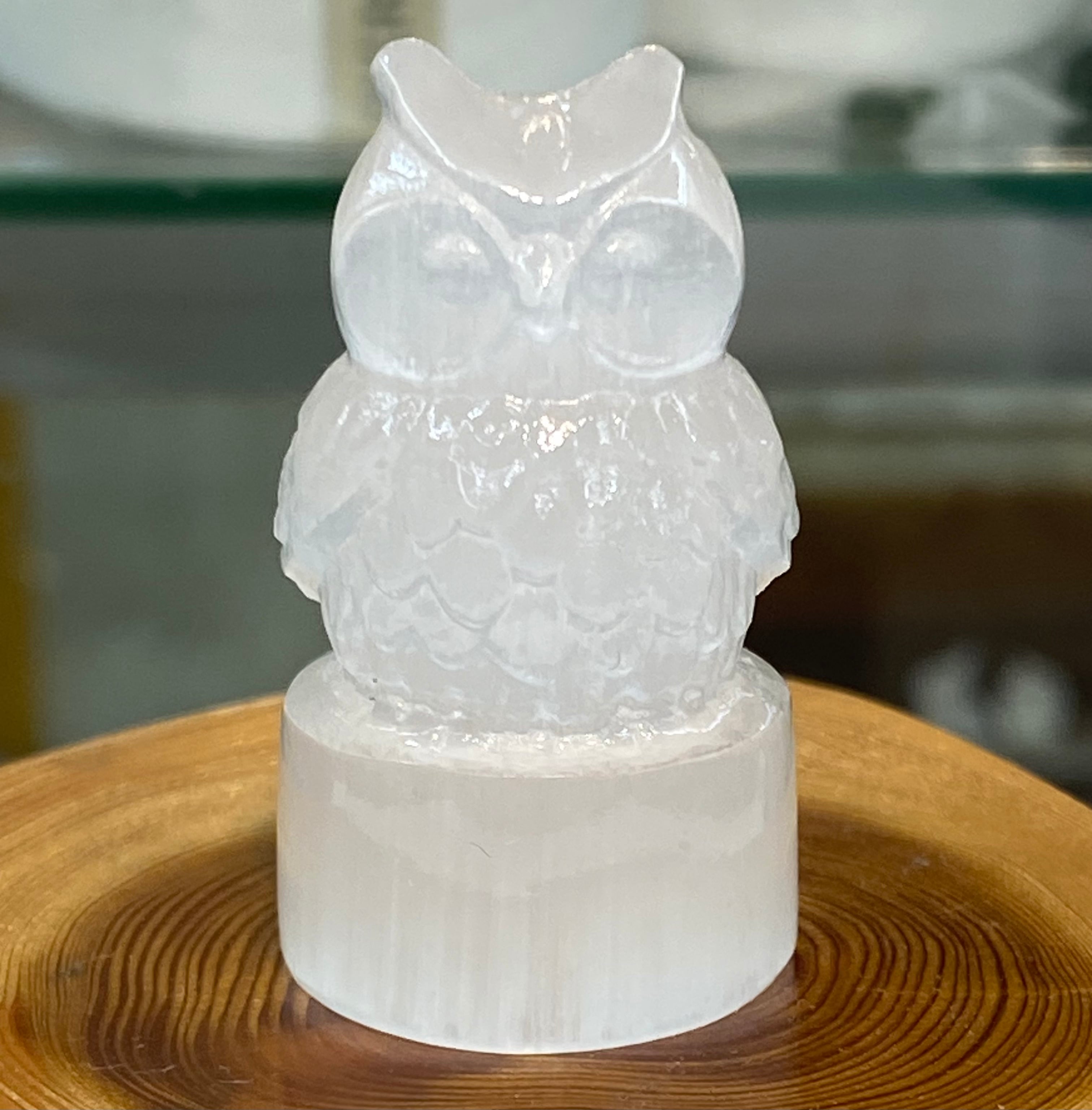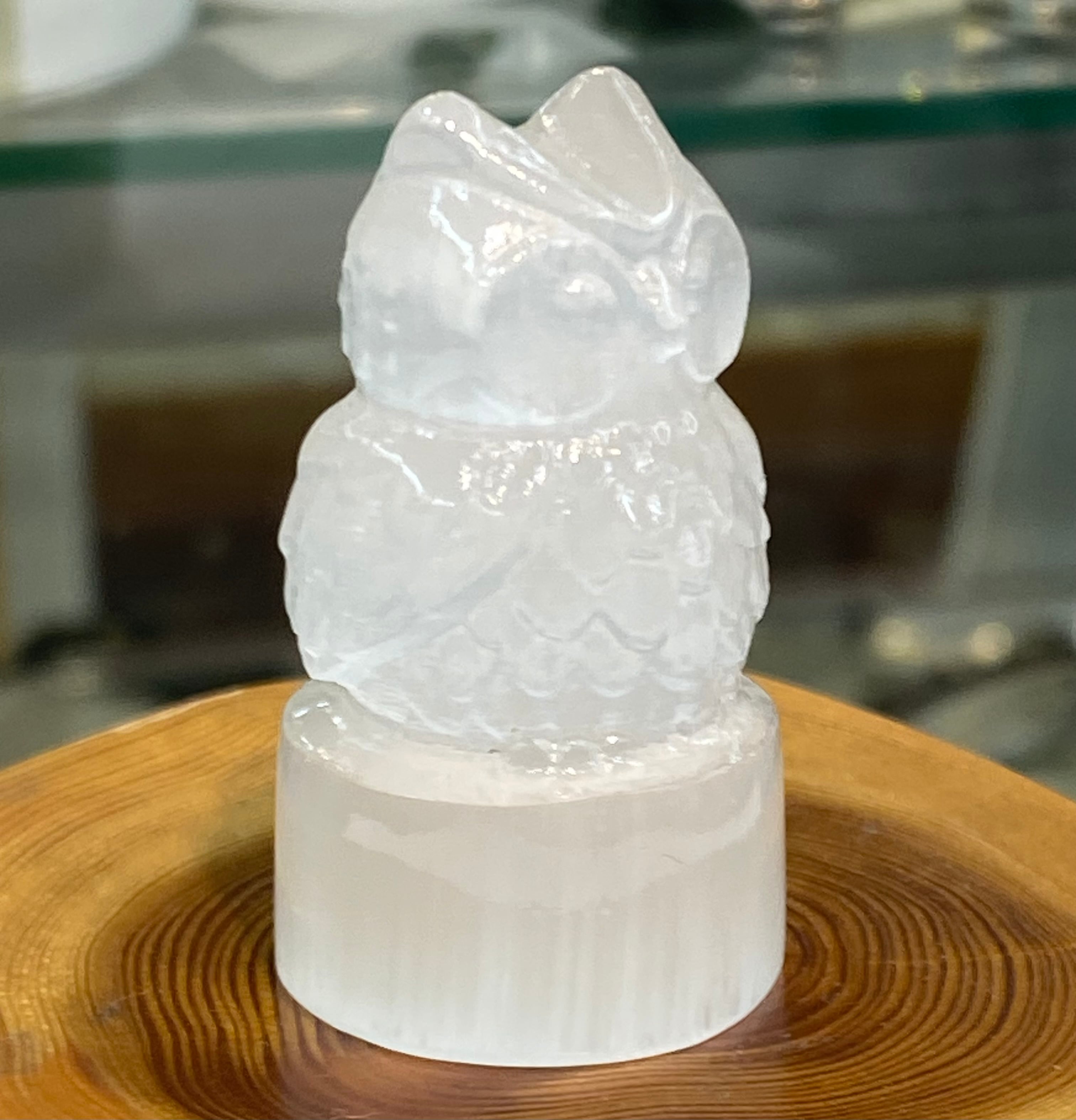 天然セレナイト フクロウ セレナイトのふくろう 透石膏のフクロウ 彫り物 縁起物