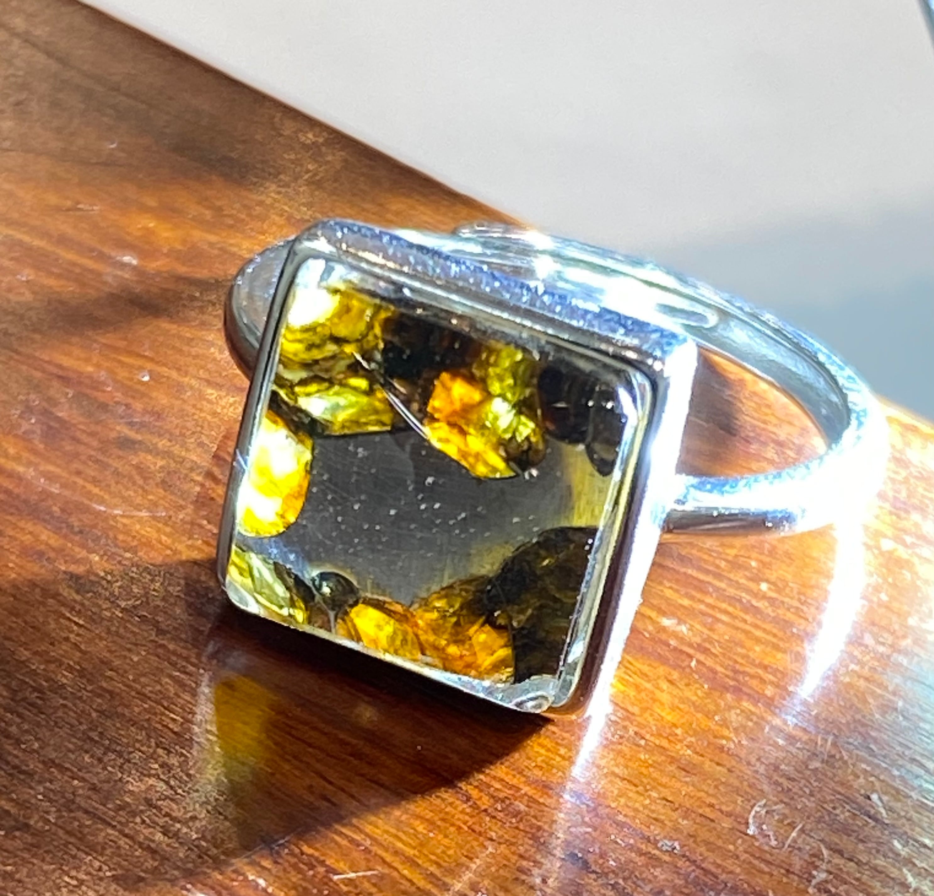 非常に神秘的なパラサイト隕石(セリコ隕石)の指輪です。