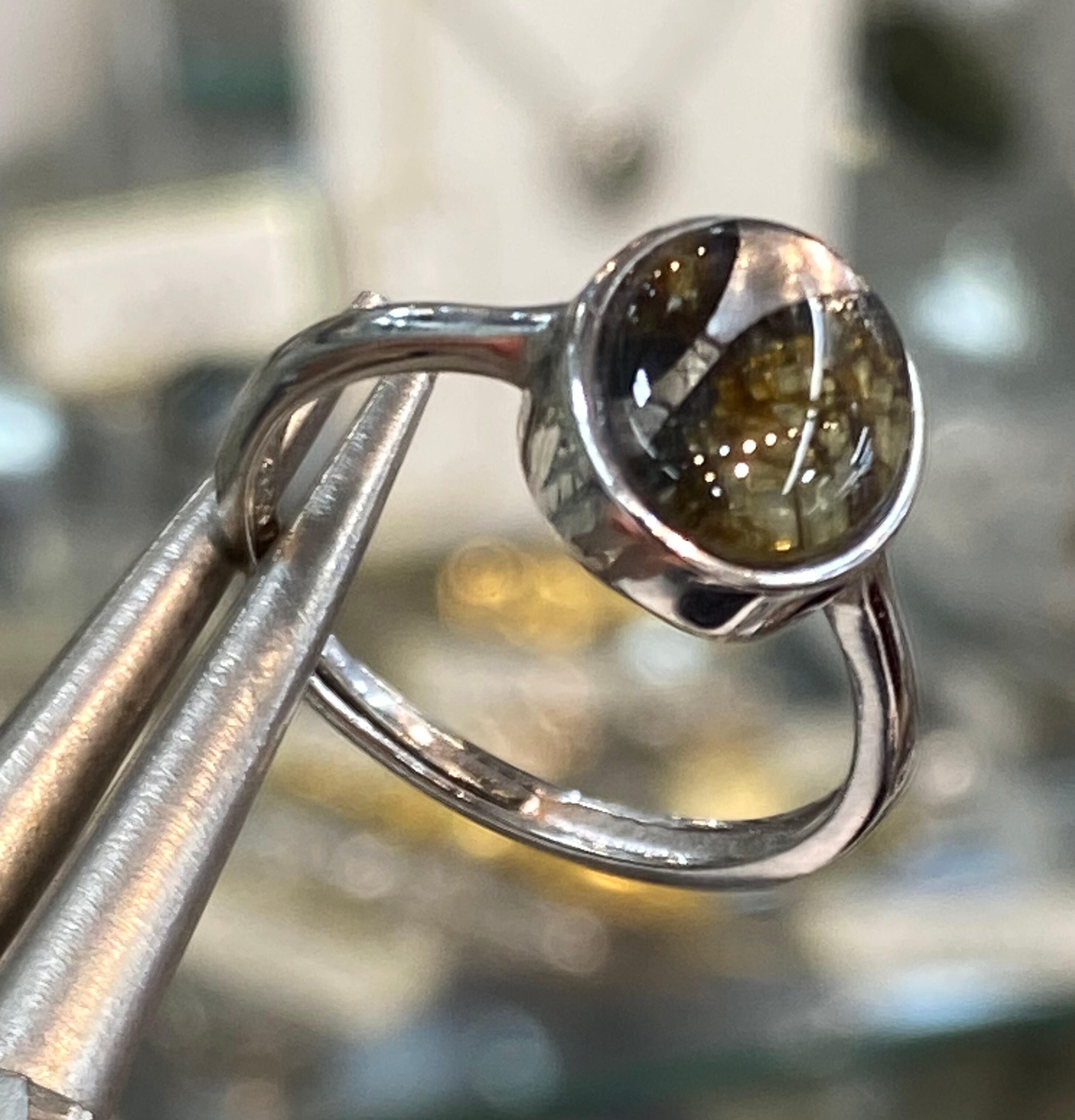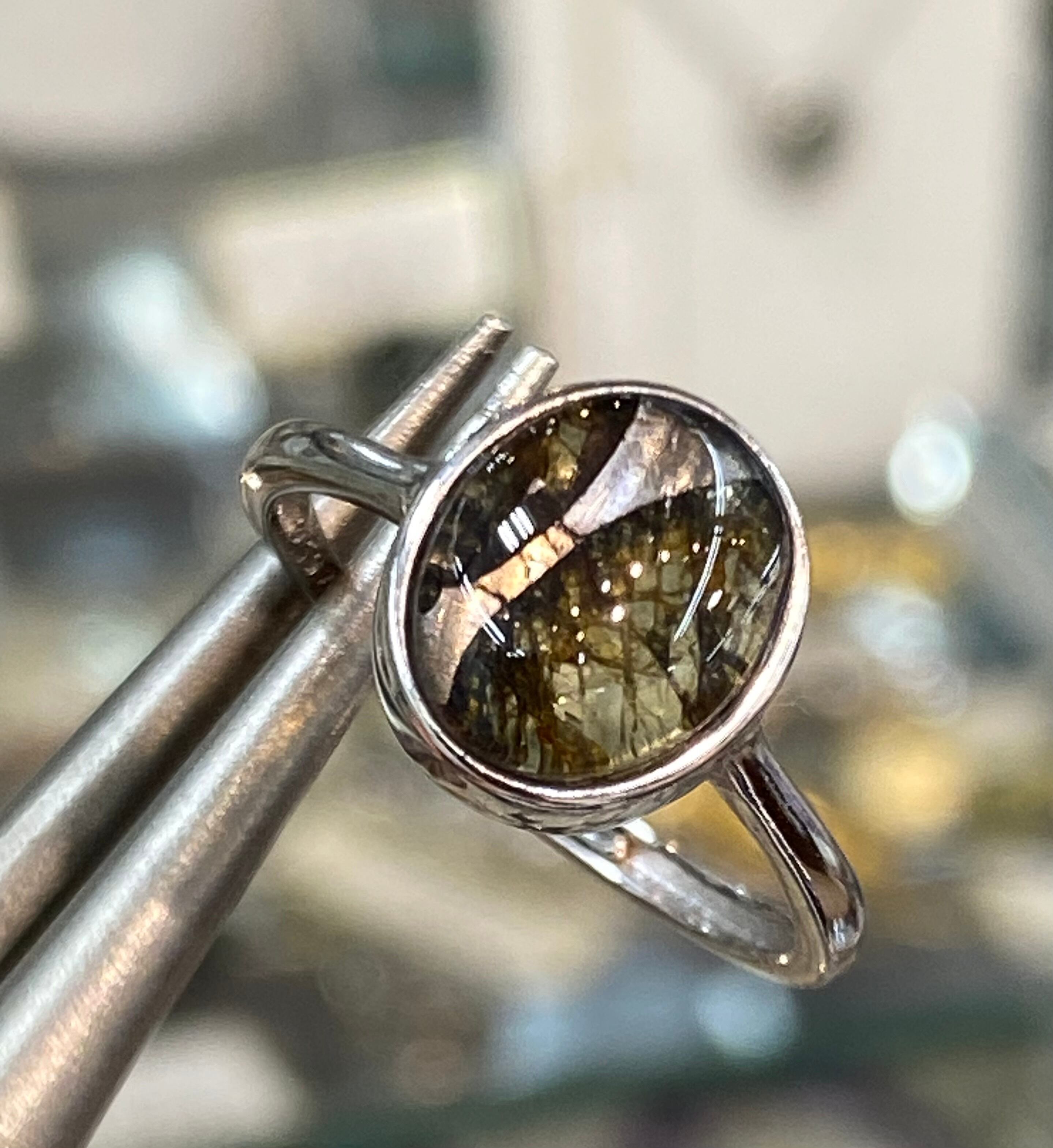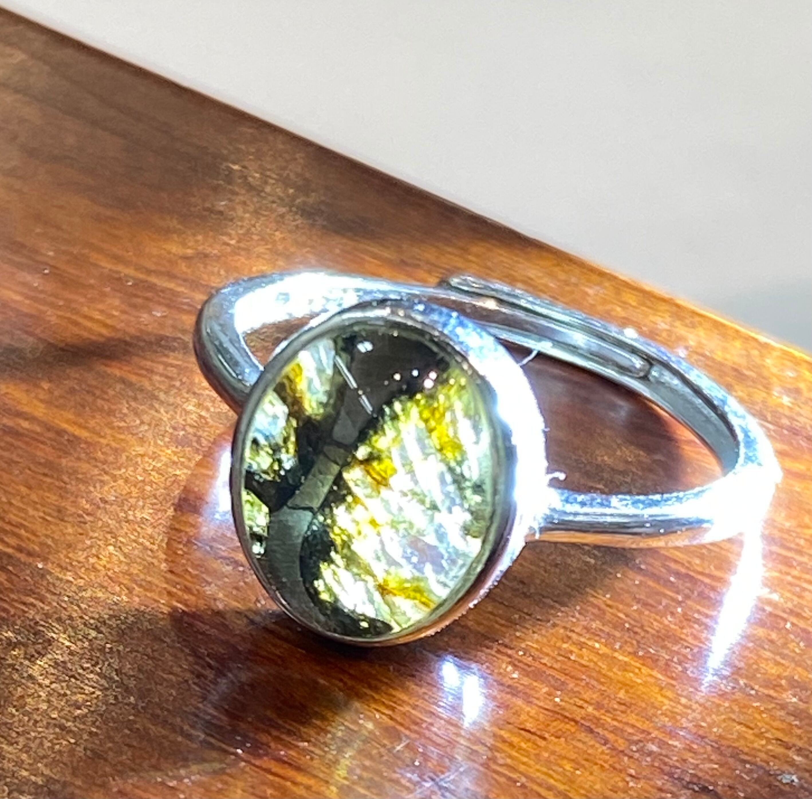 非常に神秘的なパラサイト隕石(セリコ隕石)の指輪です。