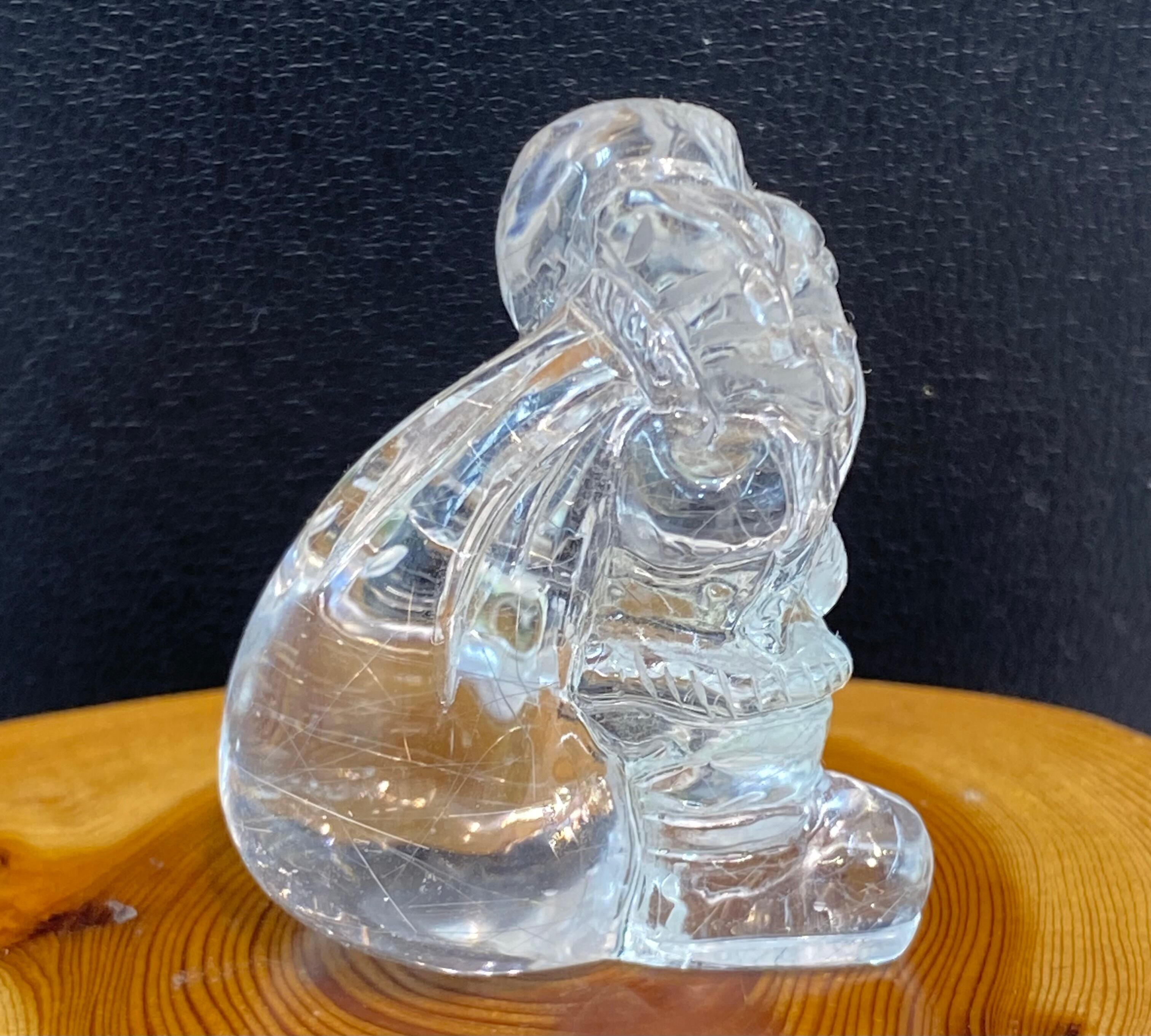 透明度抜群の天然シルバールチルクォーツを丁寧に彫刻したサンタさんです!
