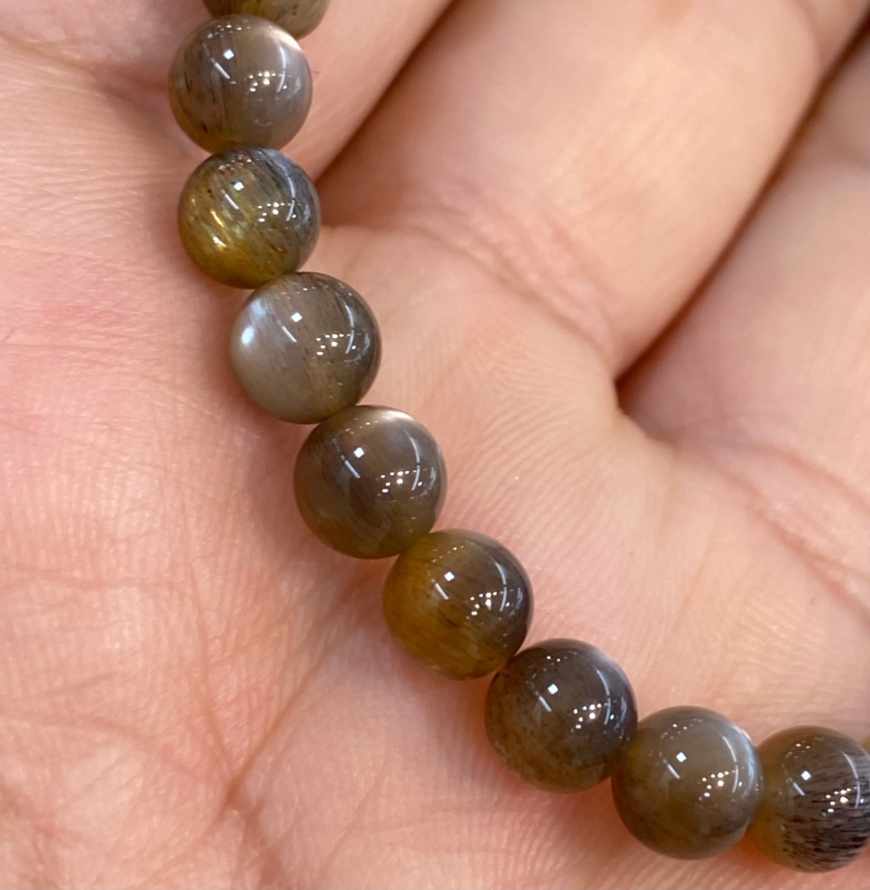 さらに内包された繊維状のレピドクロサイトに光が反射して全ての珠にキャッツアイ効果が見られます!