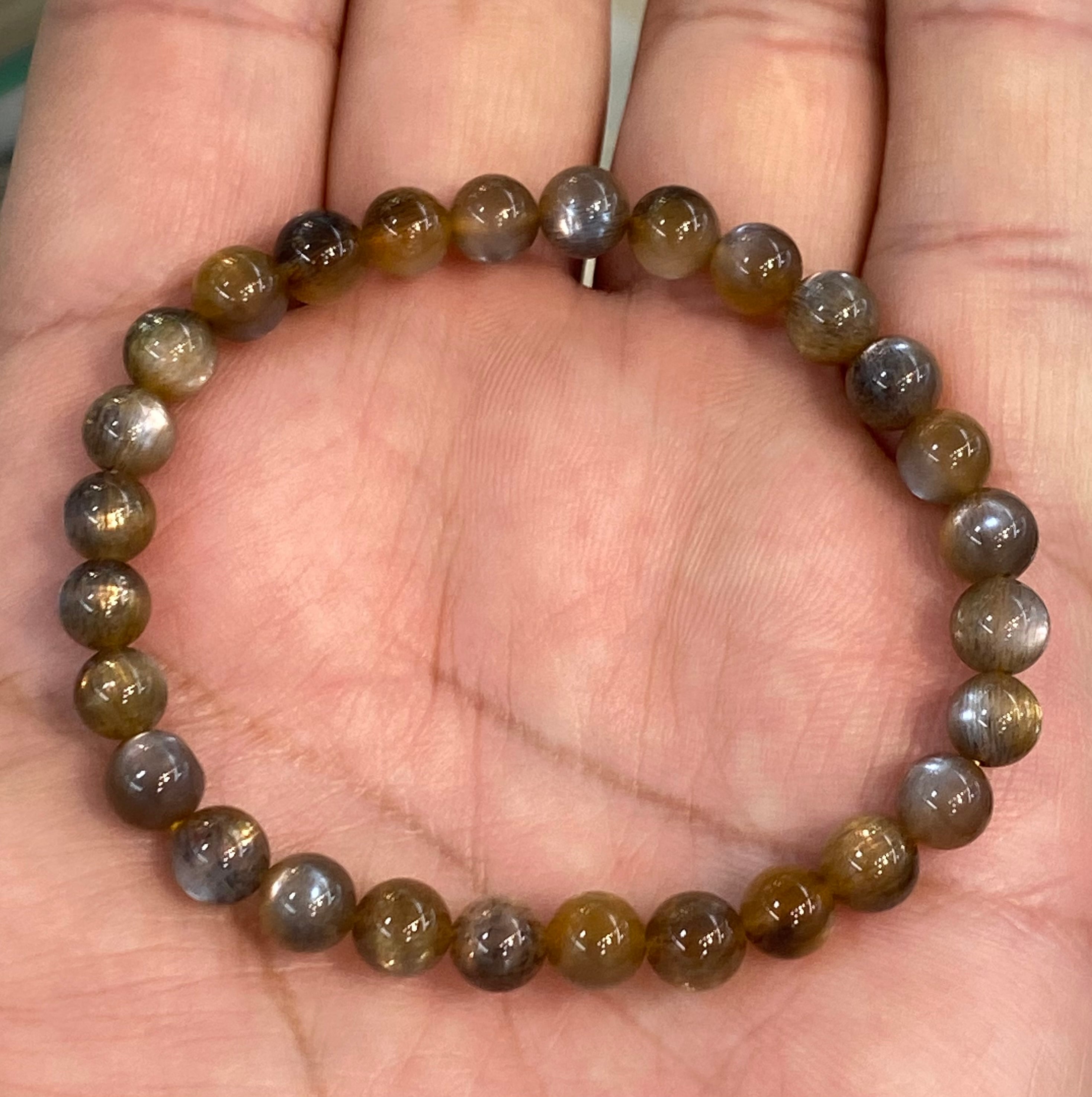 特選!最高グレード ブラックサンムーンストーンブレスレット6mm 激レア