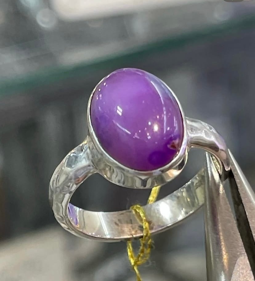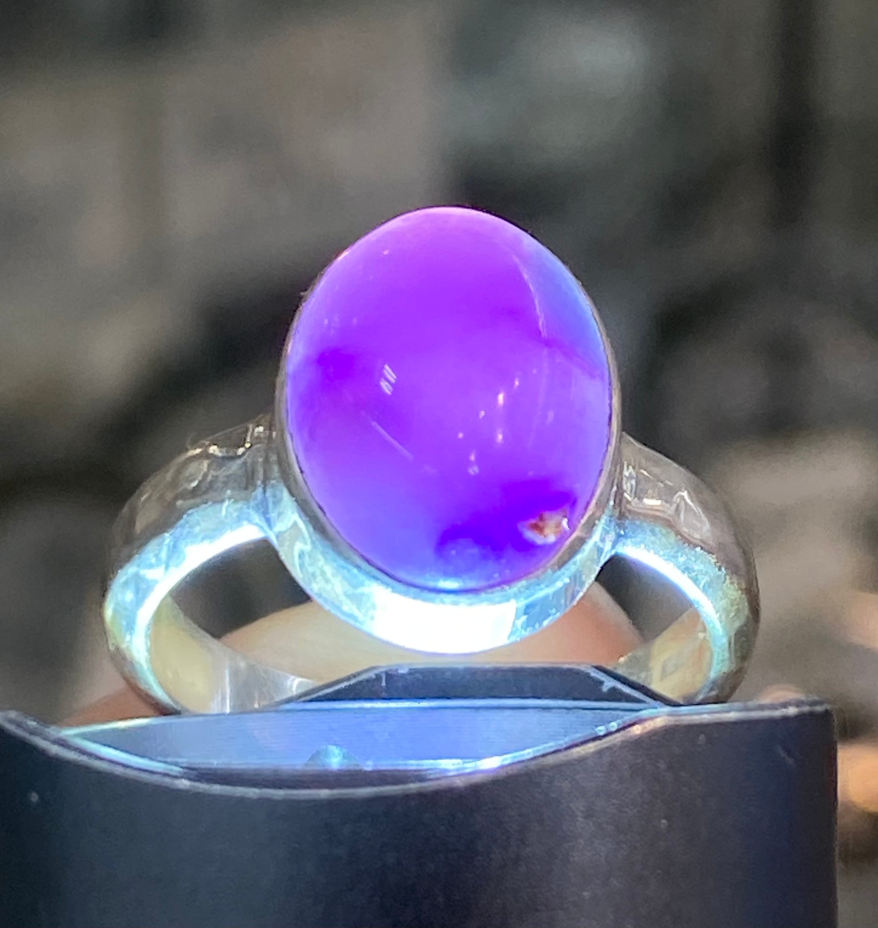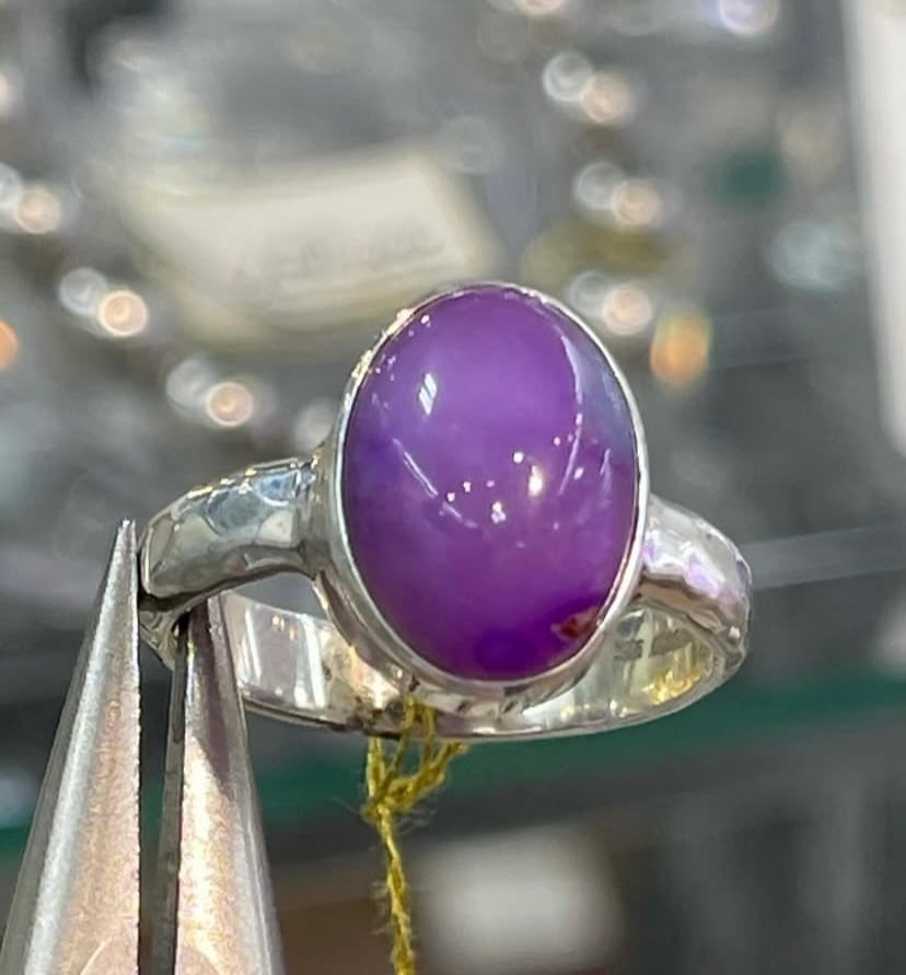ピンクかかった紫色が非常に美しく、宝石質のオールドストック天然スギライト指輪です♪
